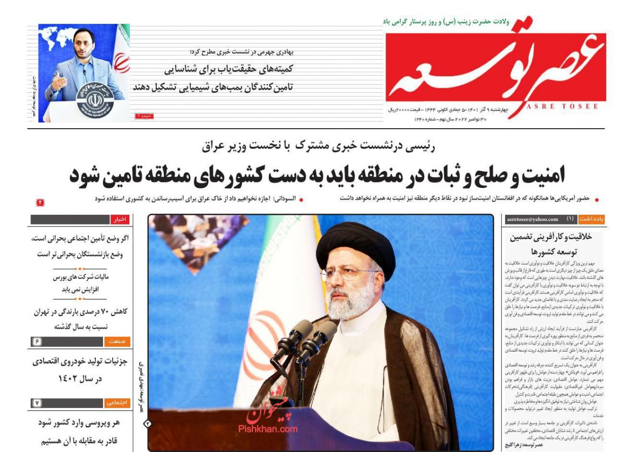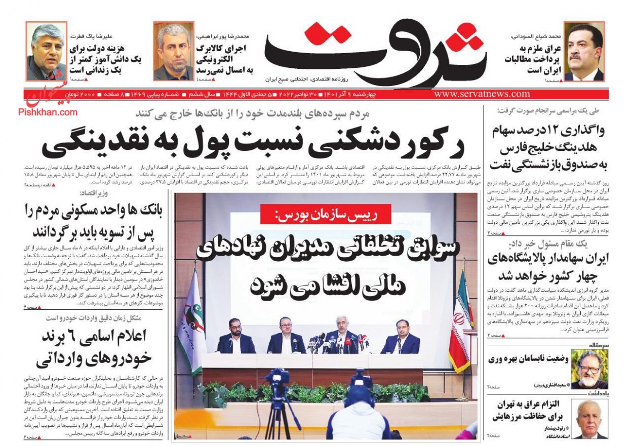 صفحه نخست روززنامه ها/ چهارشنبه ۹ آذر ۱۴۰۱