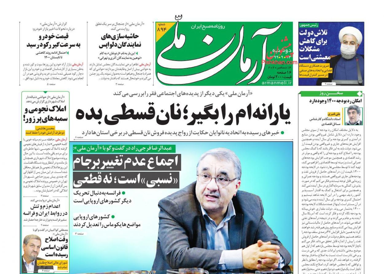 صفحه نخست روزنامه ها/ دوشنبه ۲۴ آذر ۹۹