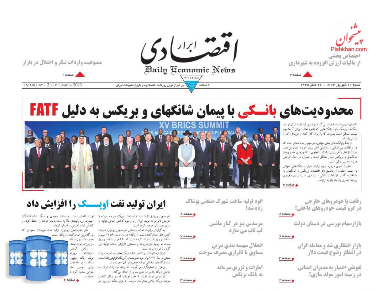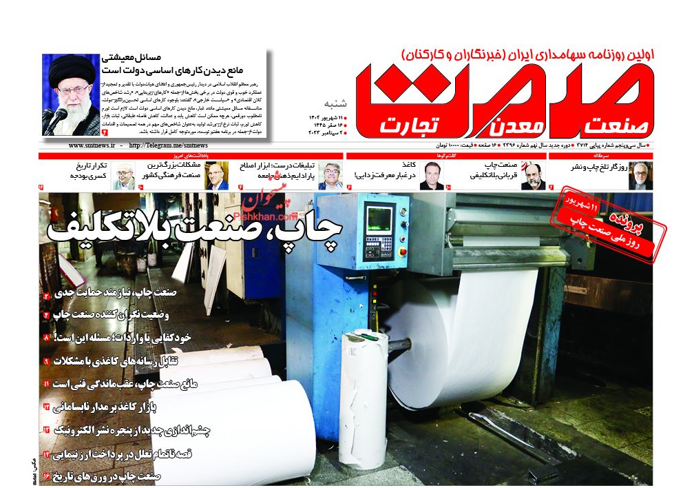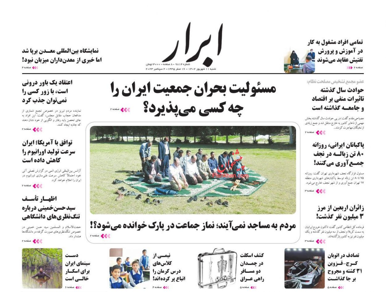 صفحه نخست روزنامه ها/ شنبه ۱۱ شهریور ۱۴۰۲