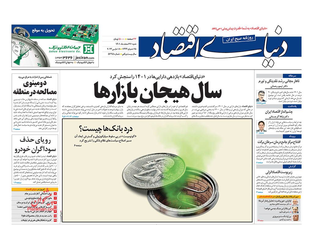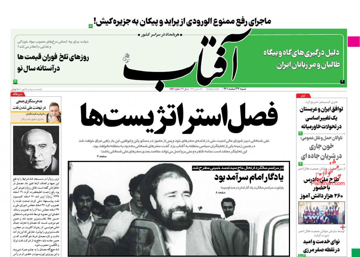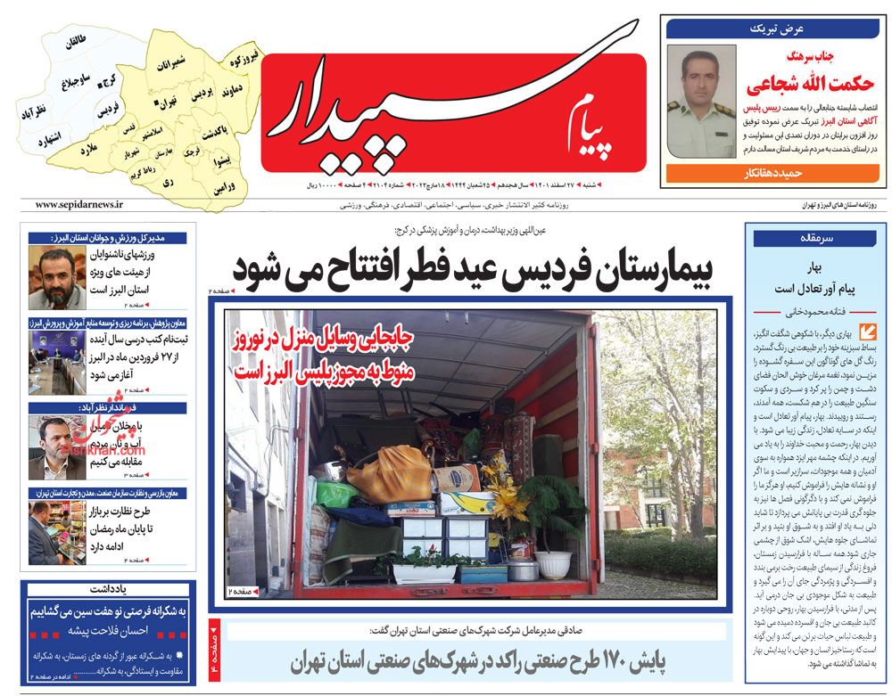 صفحه نخست روزنامه ها/ شنبه ۲۷ اسفند ۱۴۰۱