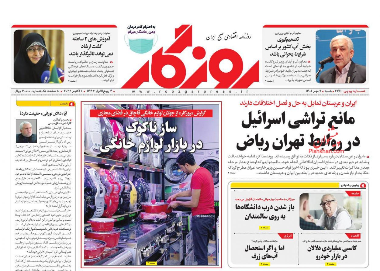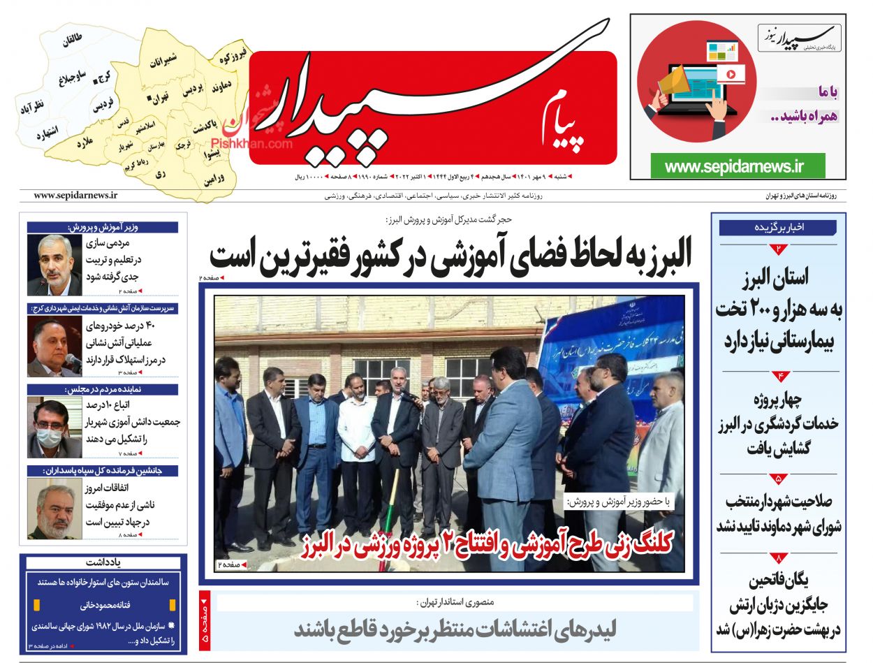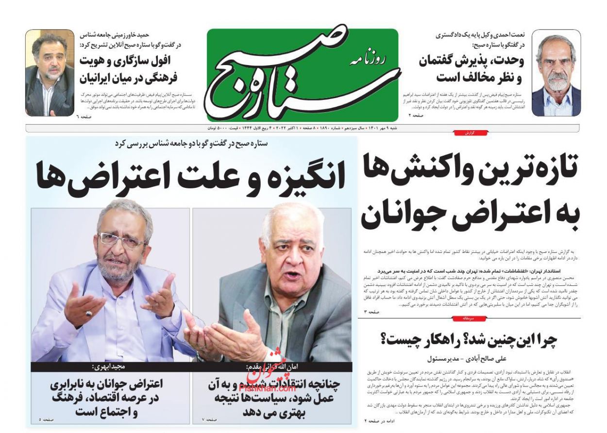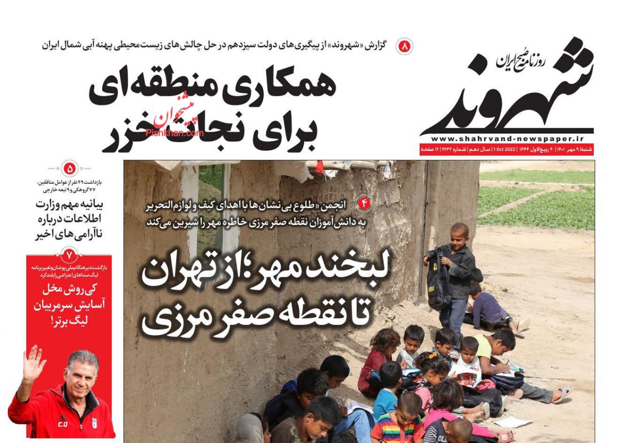 صفحه نخست روزنامه ها/ شنبه ۹ مهر ۱۴۰۱
