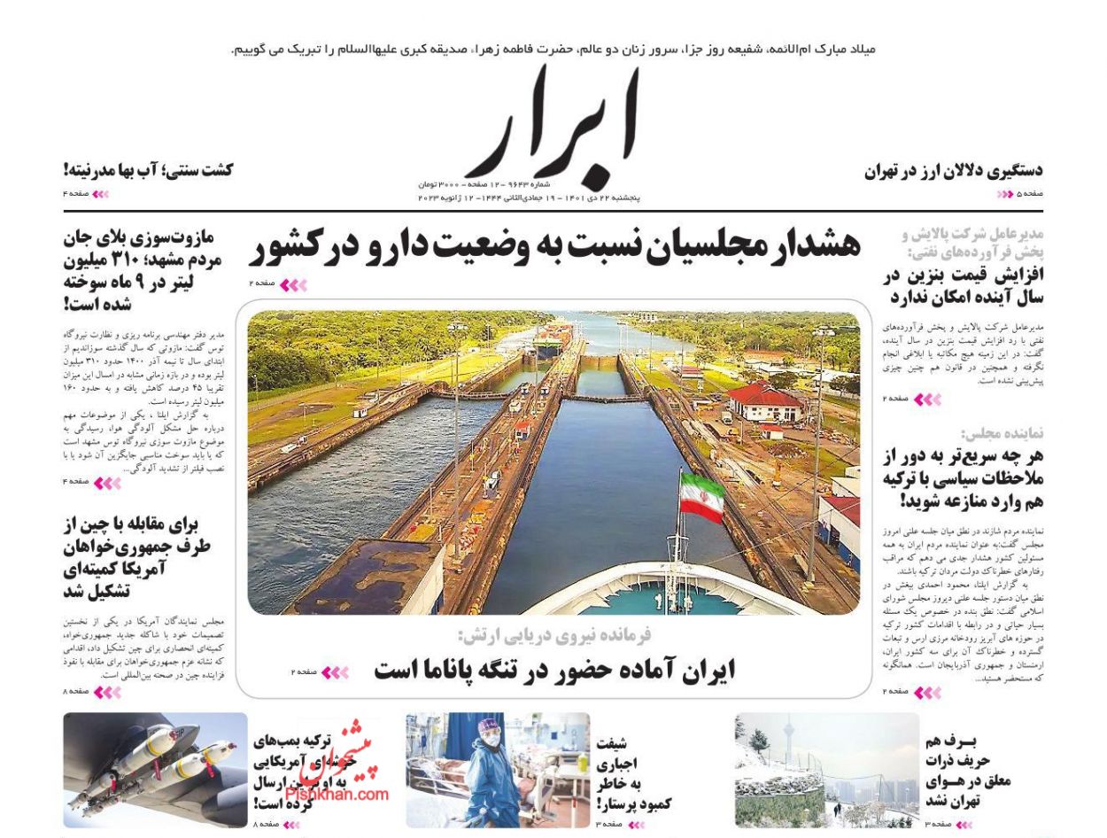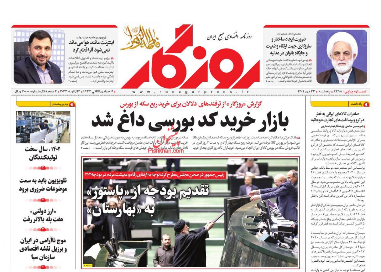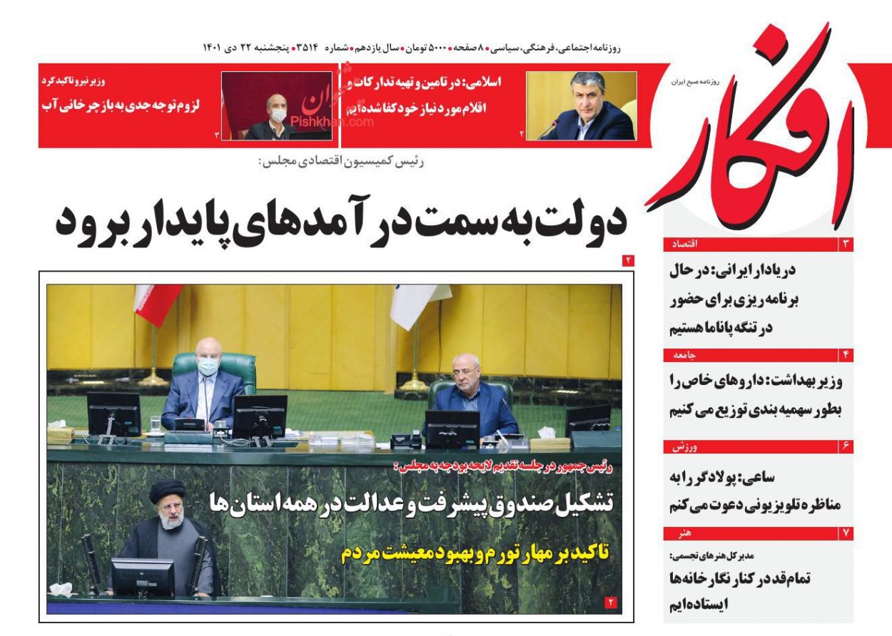 صفحه نخست روزنامه ها/ پنجشنبه ۲۲ دی ۱۴۰۱