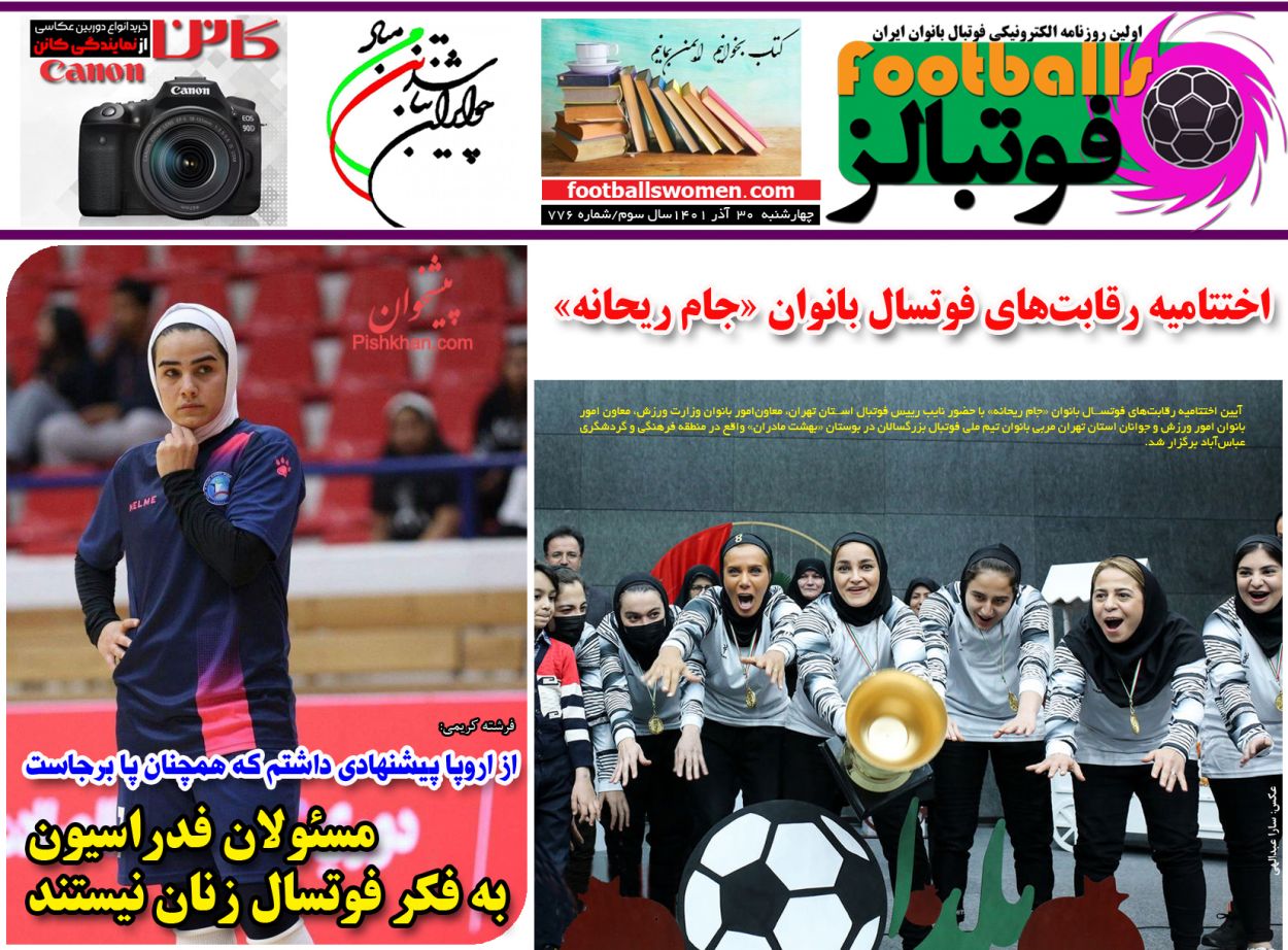 صفحه نخست روزنامه ها/ چهارشنبه ۳۰ آذر ۱۴۰۱