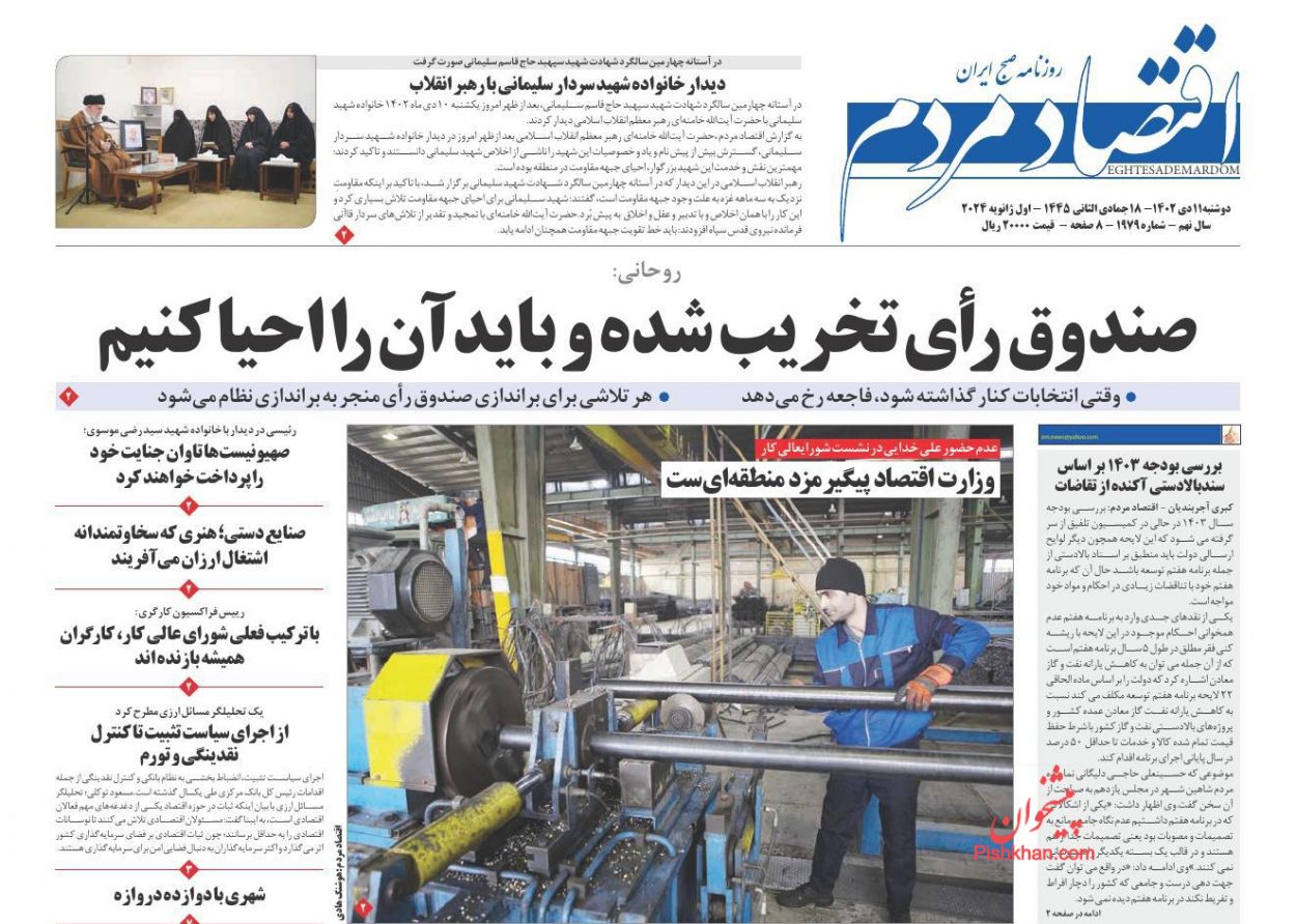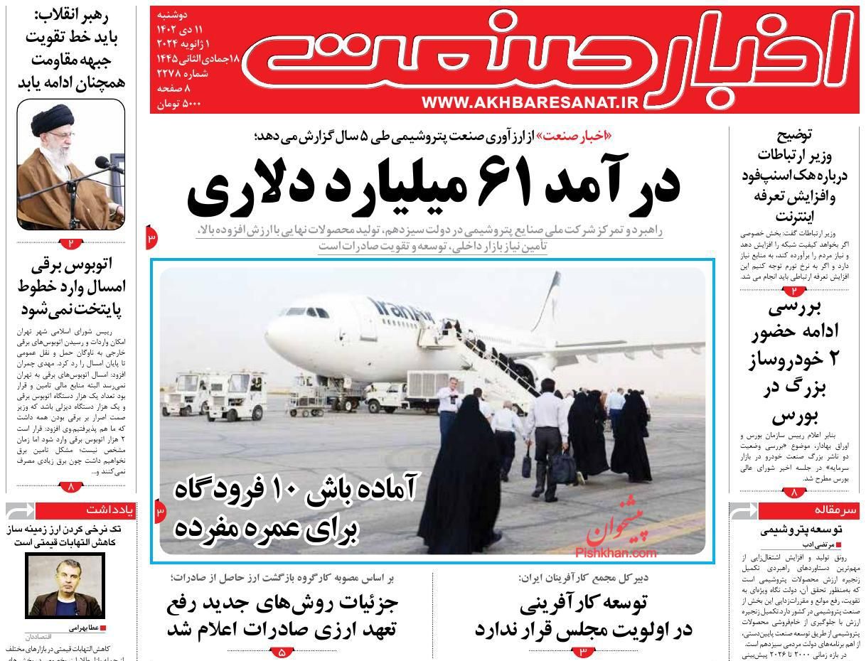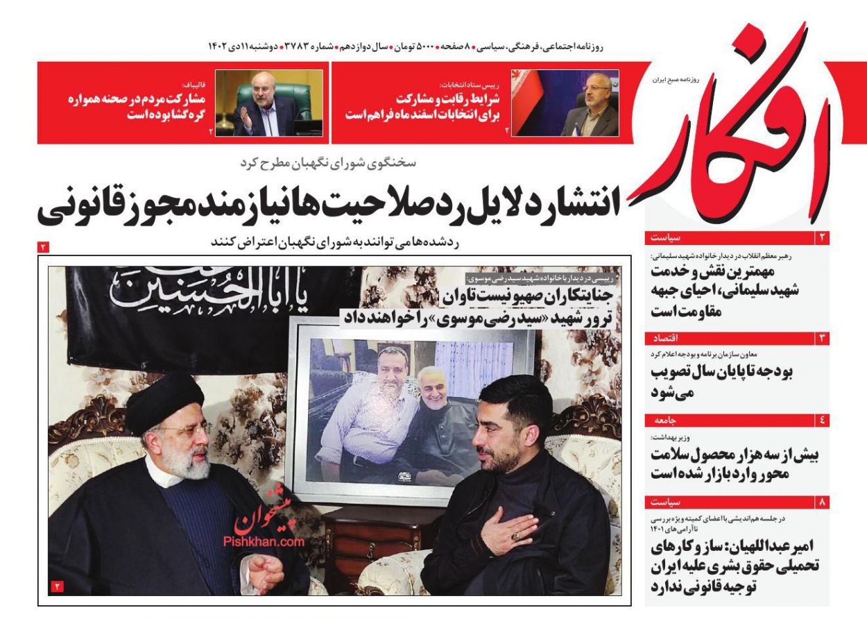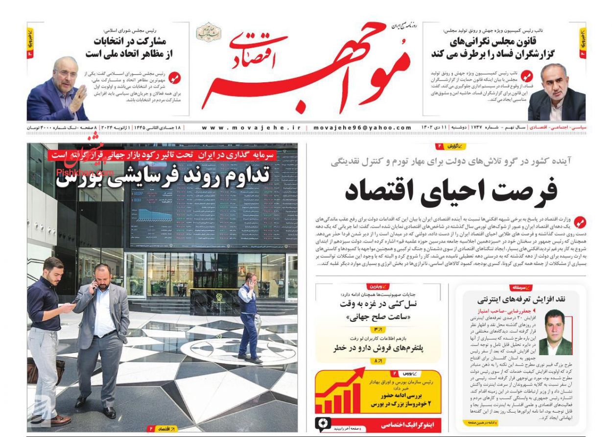 صفحه نخست روزنامه ها/ دوشنبه ۱۱ دی ۱۴۰۲