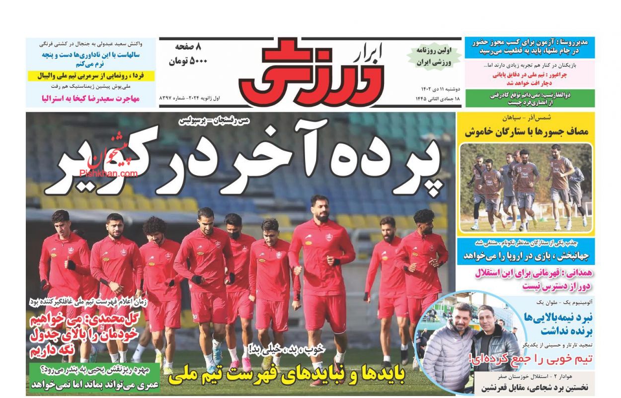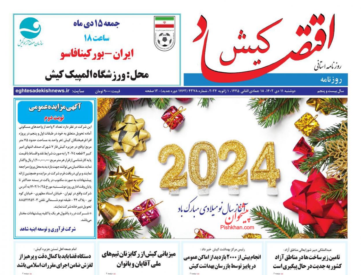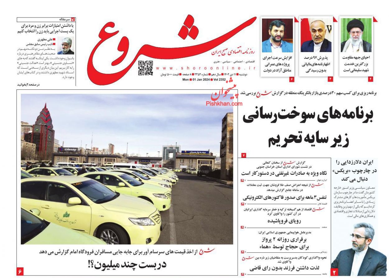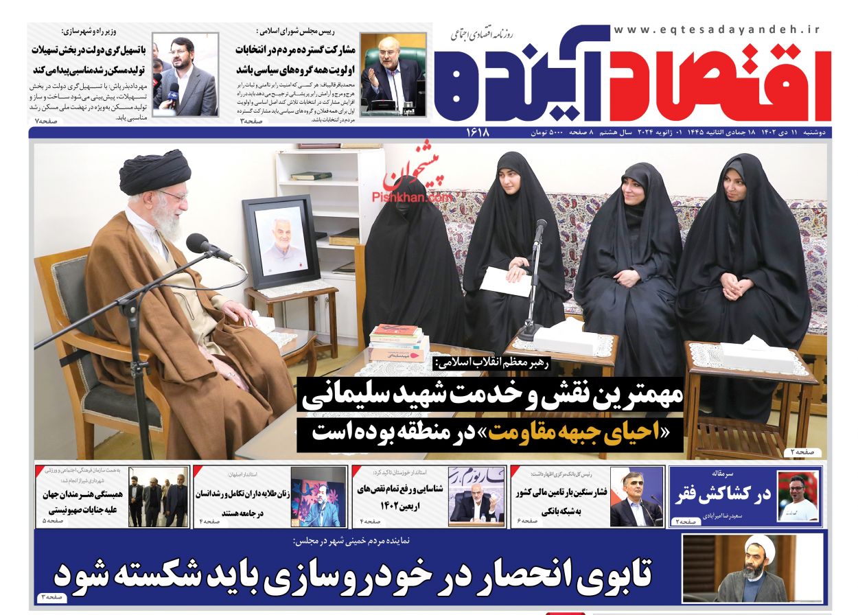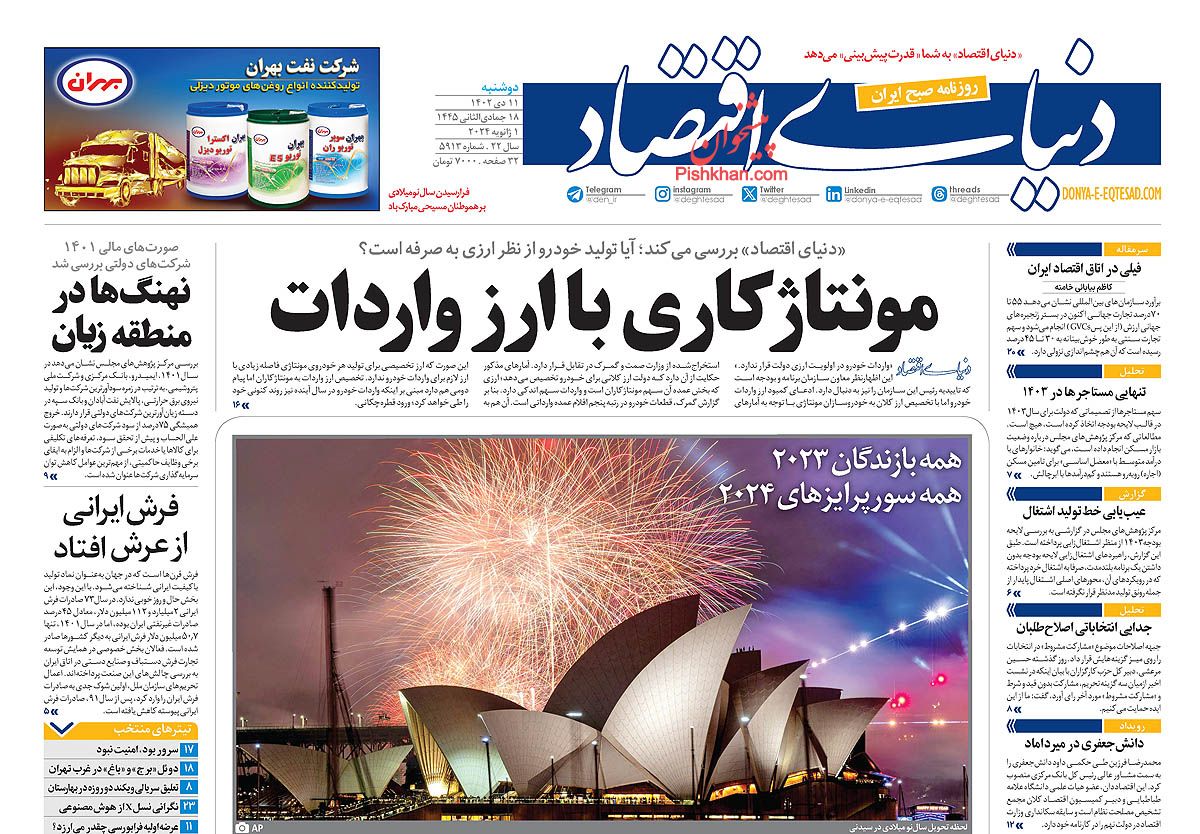 صفحه نخست روزنامه ها/ دوشنبه ۱۱ دی ۱۴۰۲