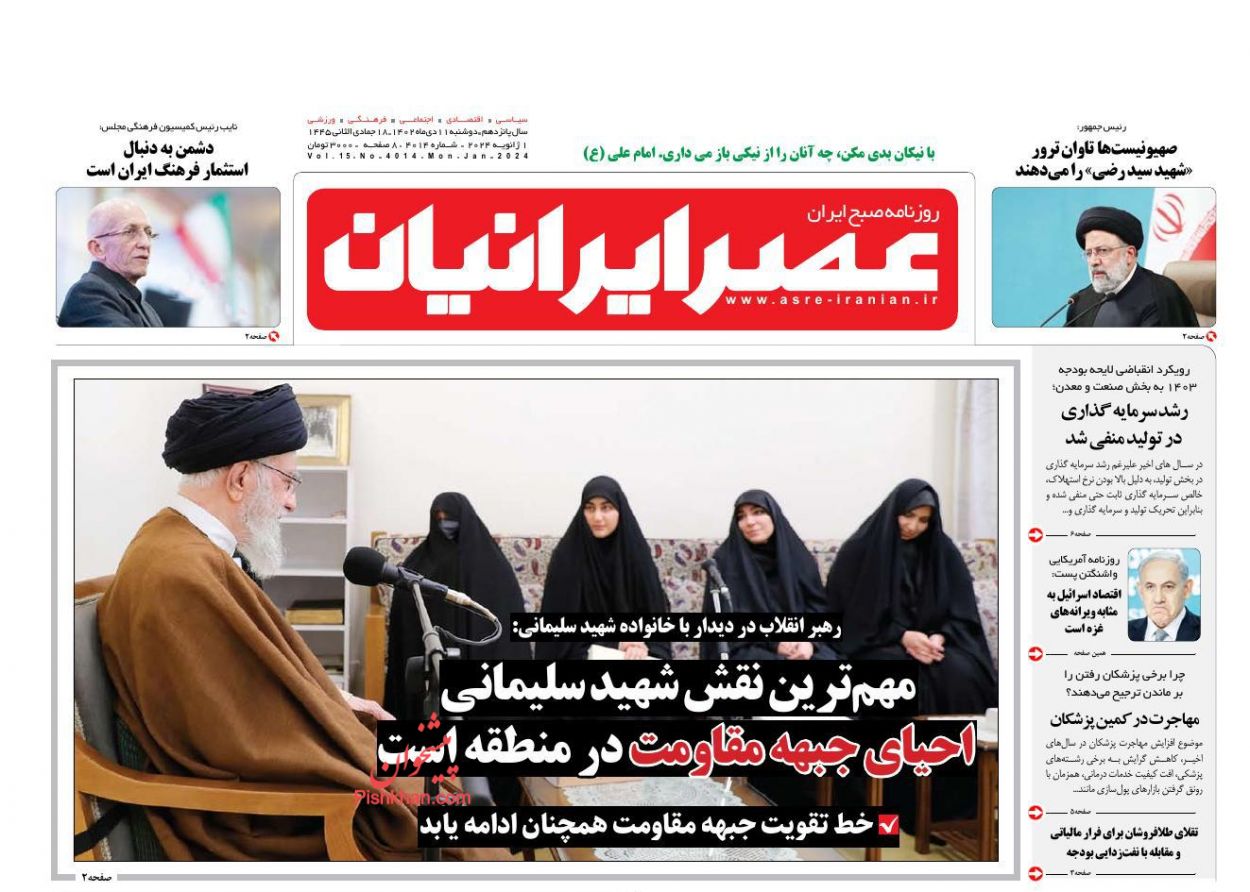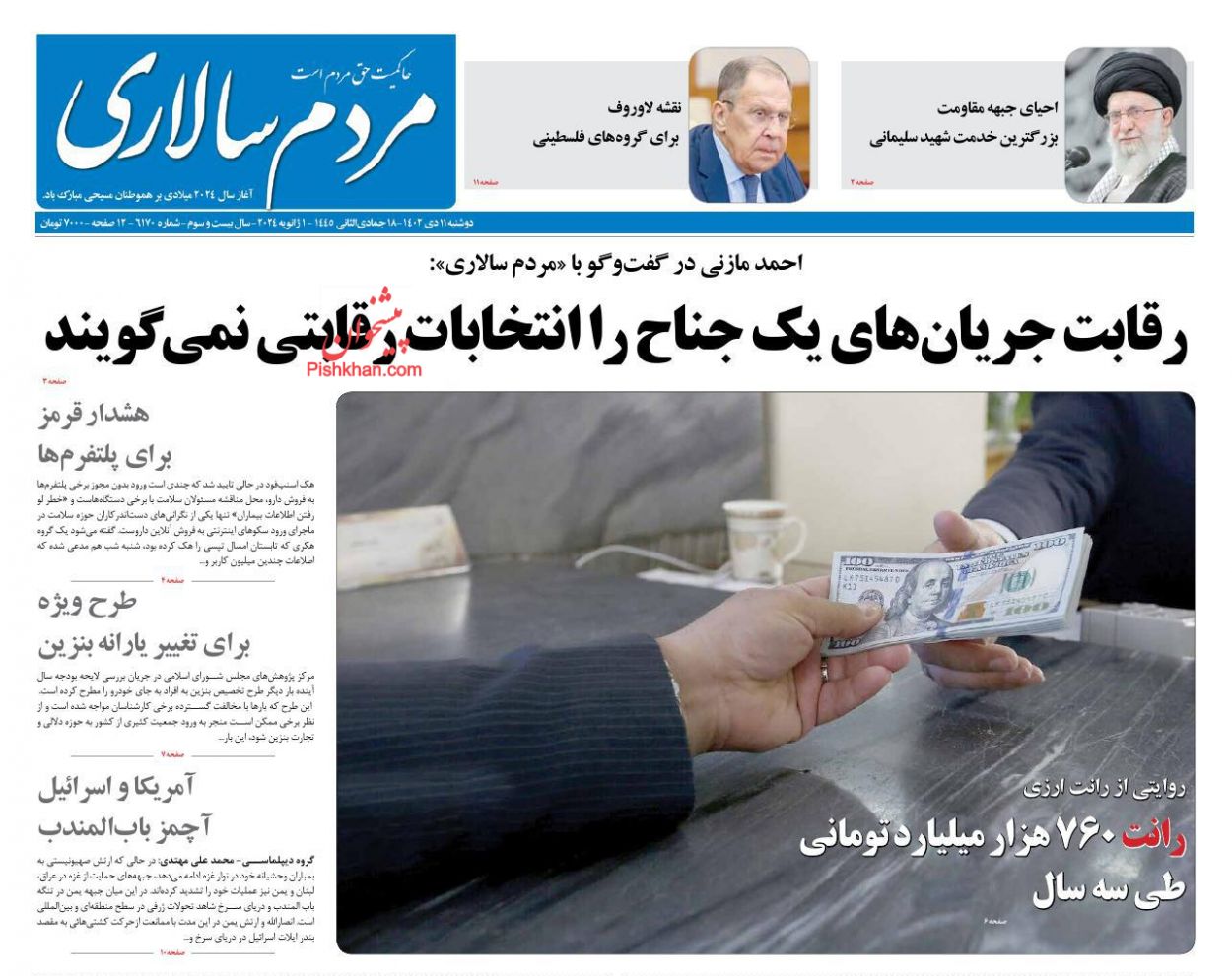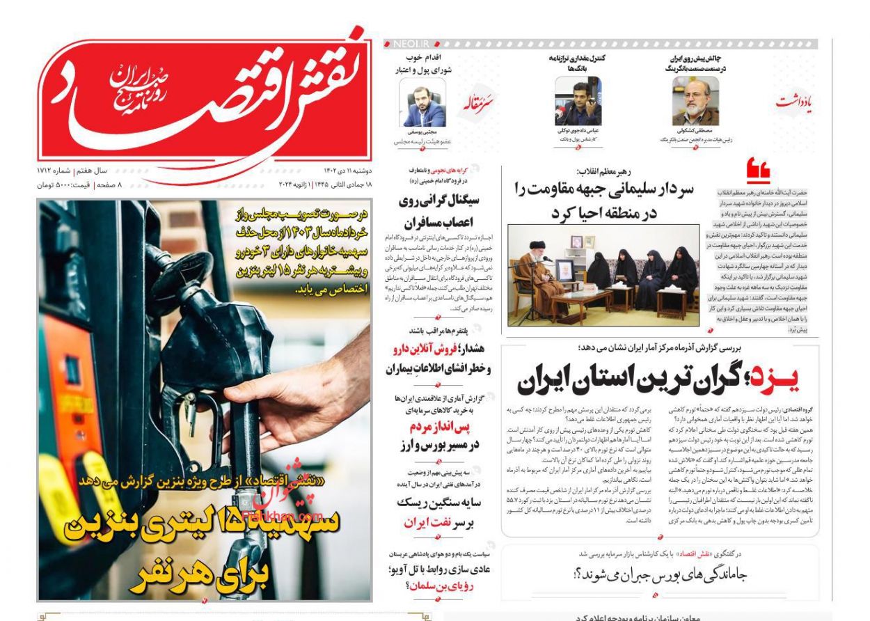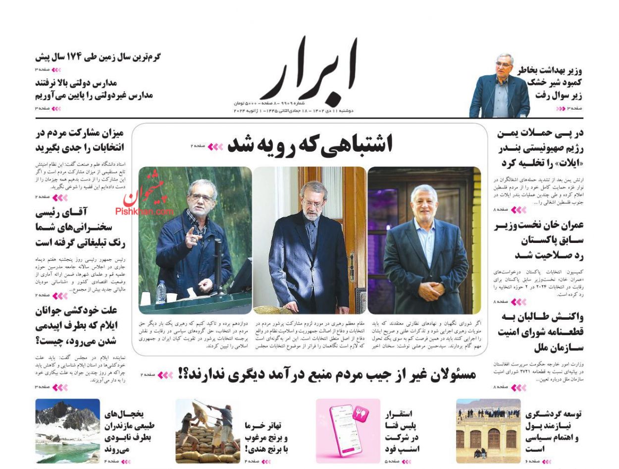 صفحه نخست روزنامه ها/ دوشنبه ۱۱ دی ۱۴۰۲