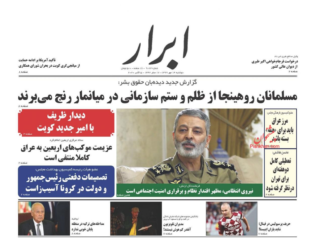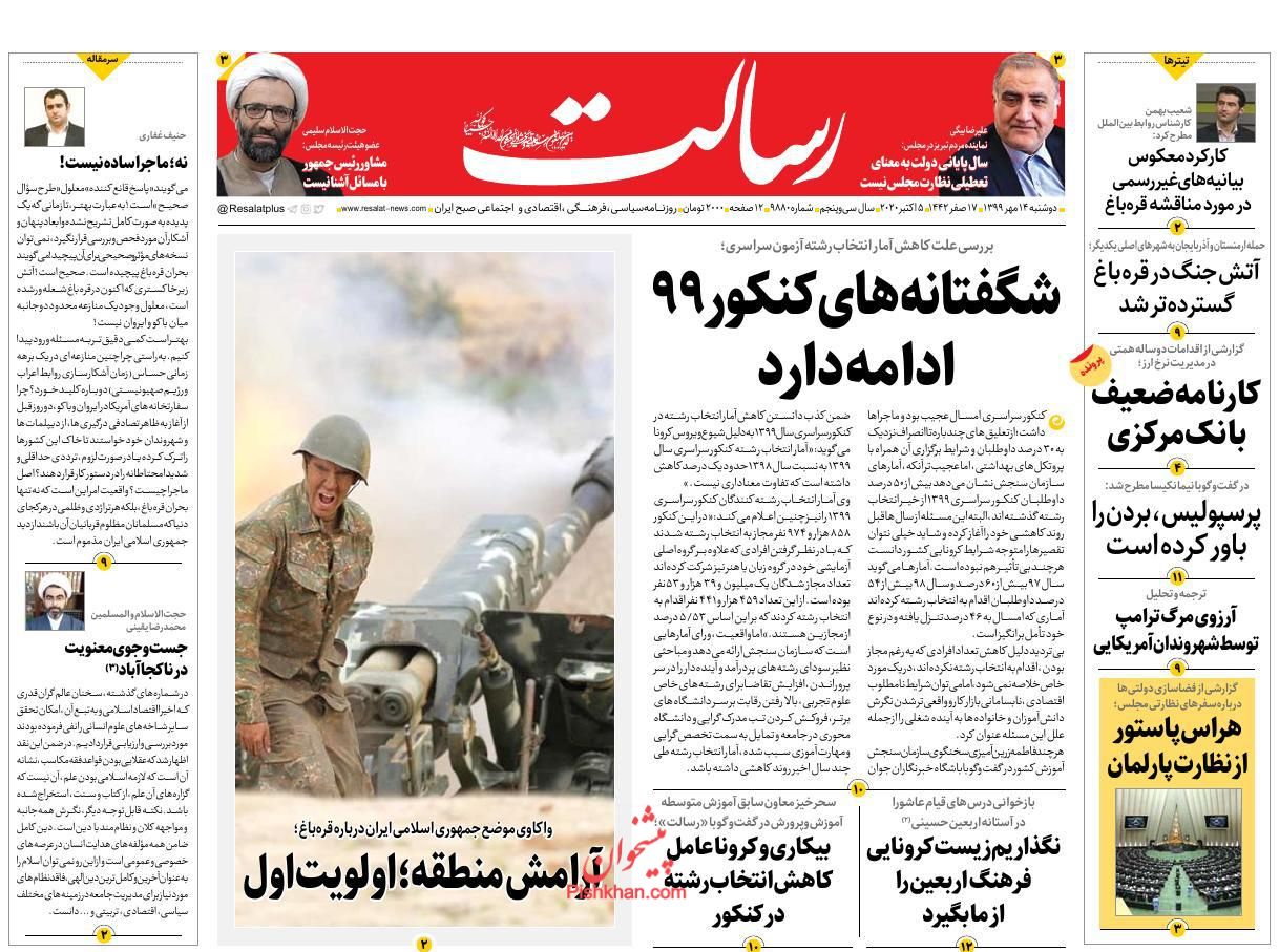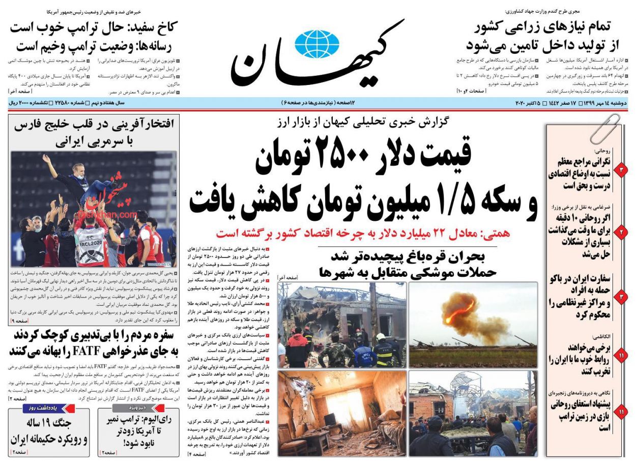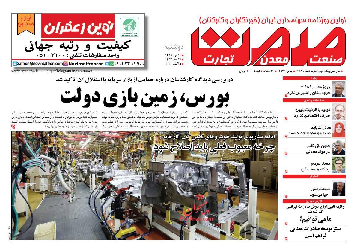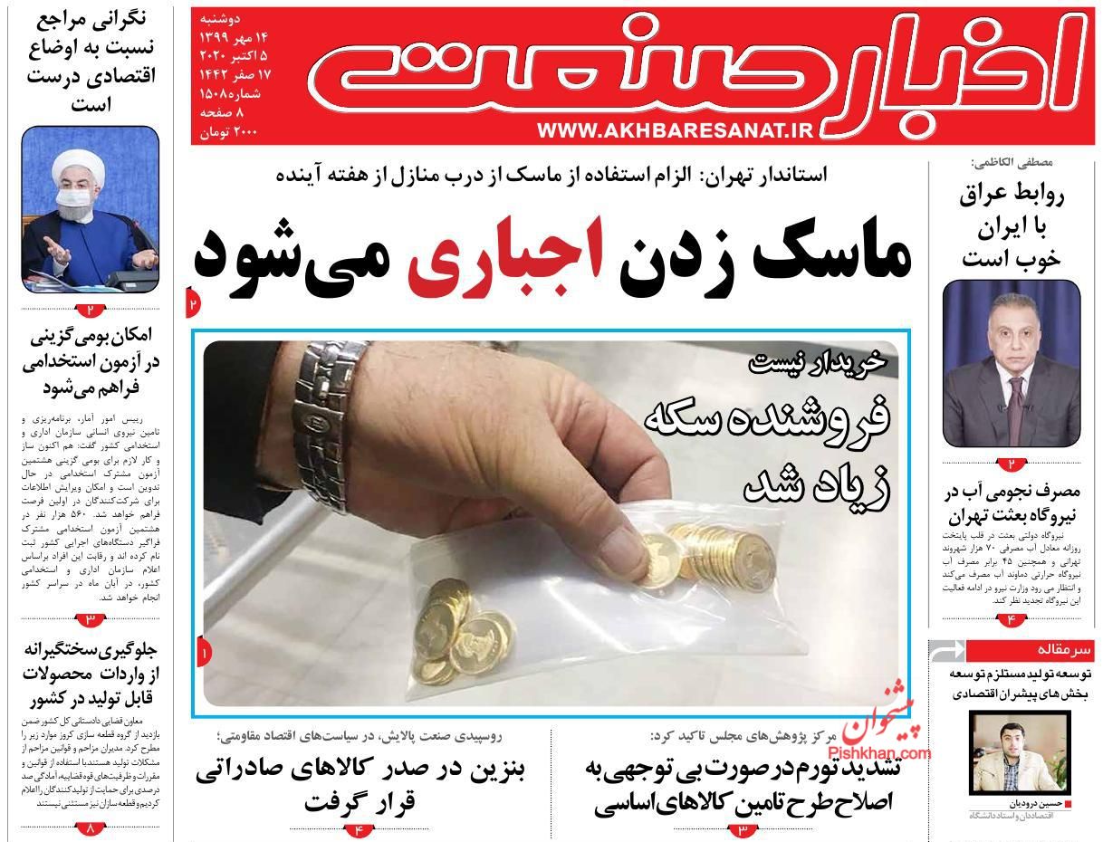 صفحه نخست روزنامه ها/ دوشنبه ۱۴ مهر ۹۹