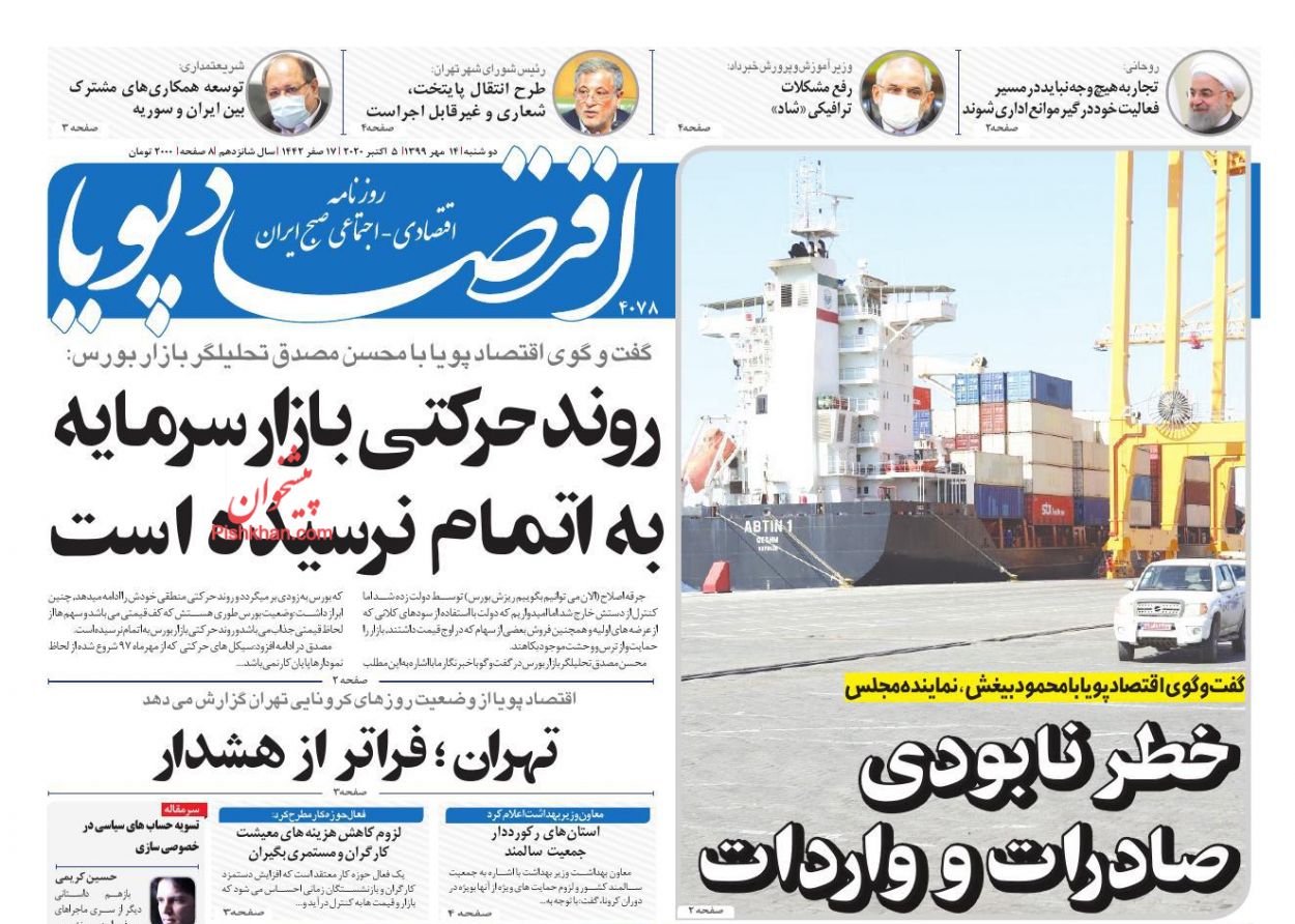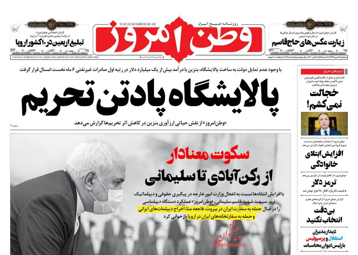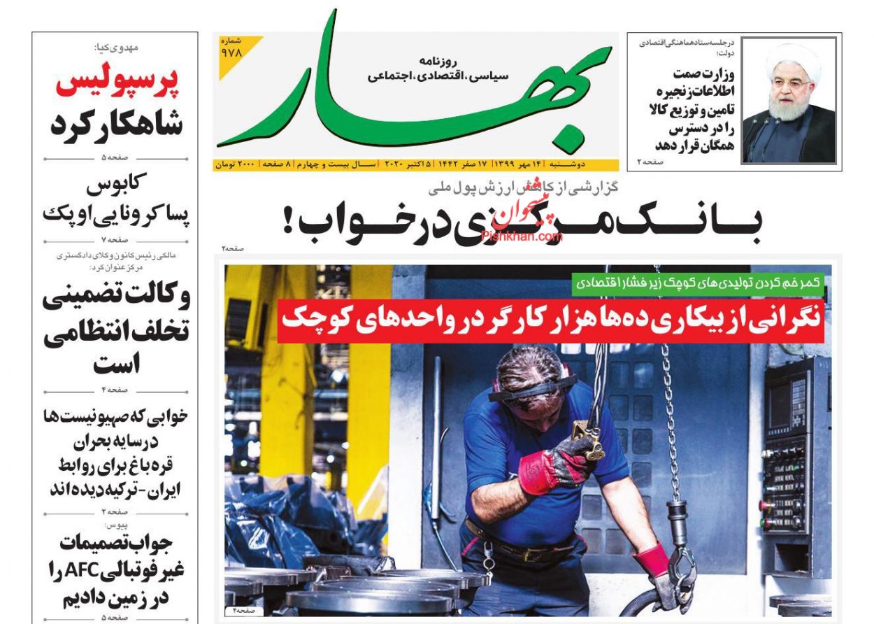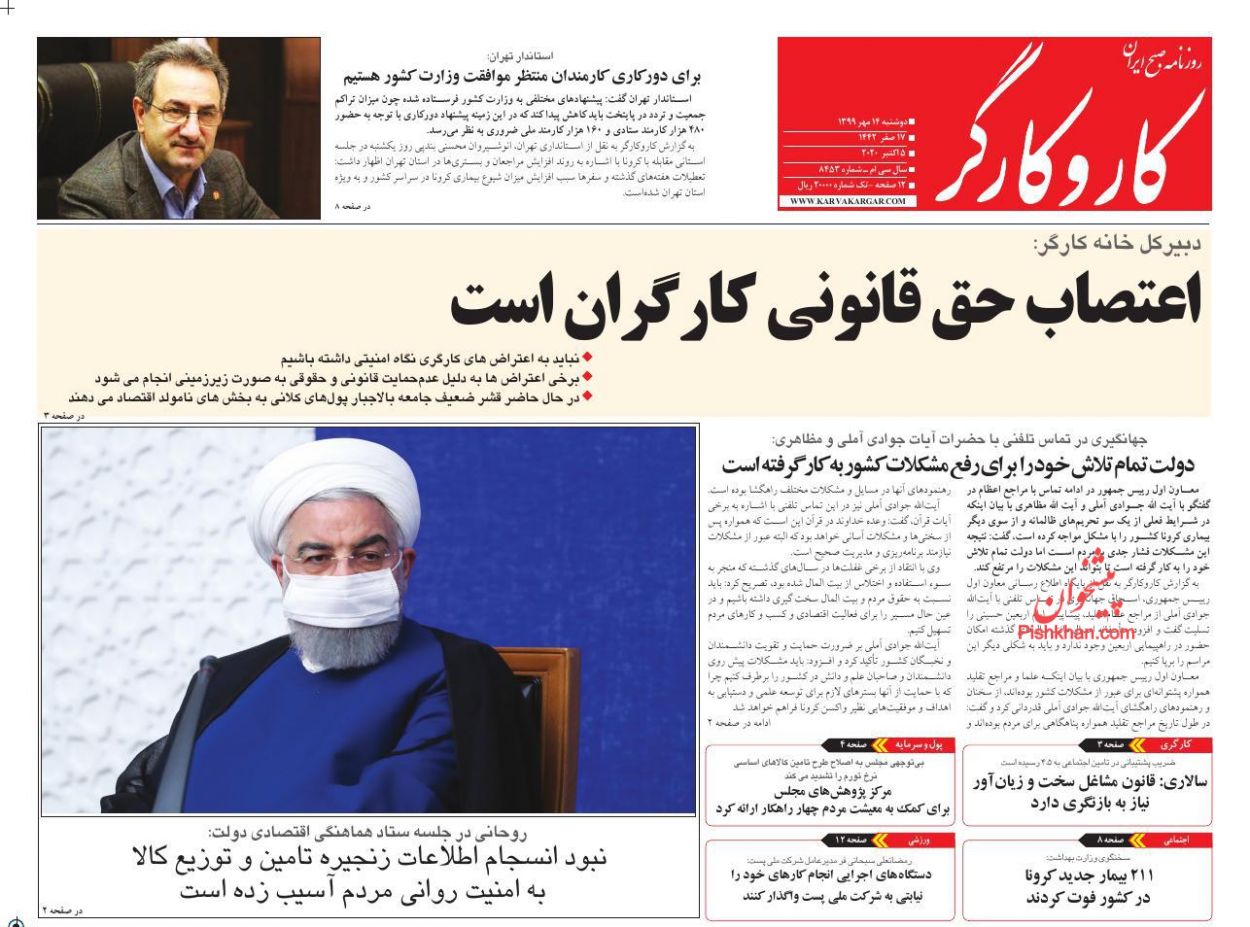صفحه نخست روزنامه ها/ دوشنبه ۱۴ مهر ۹۹