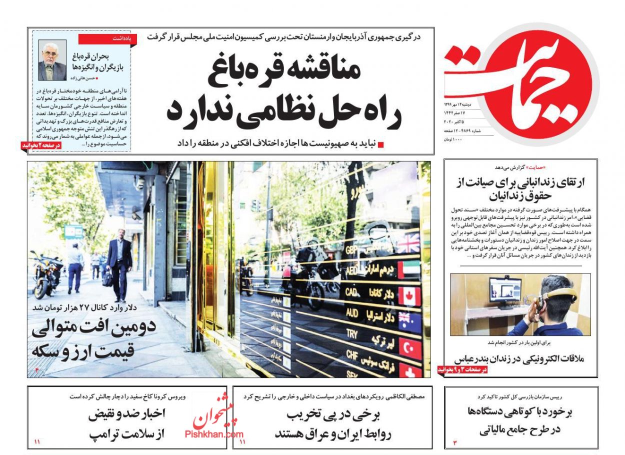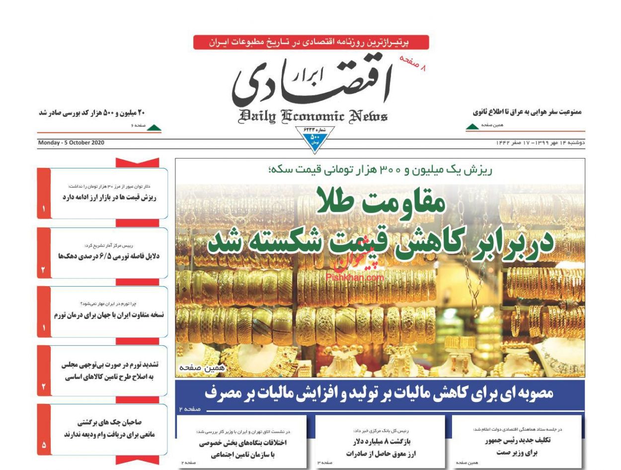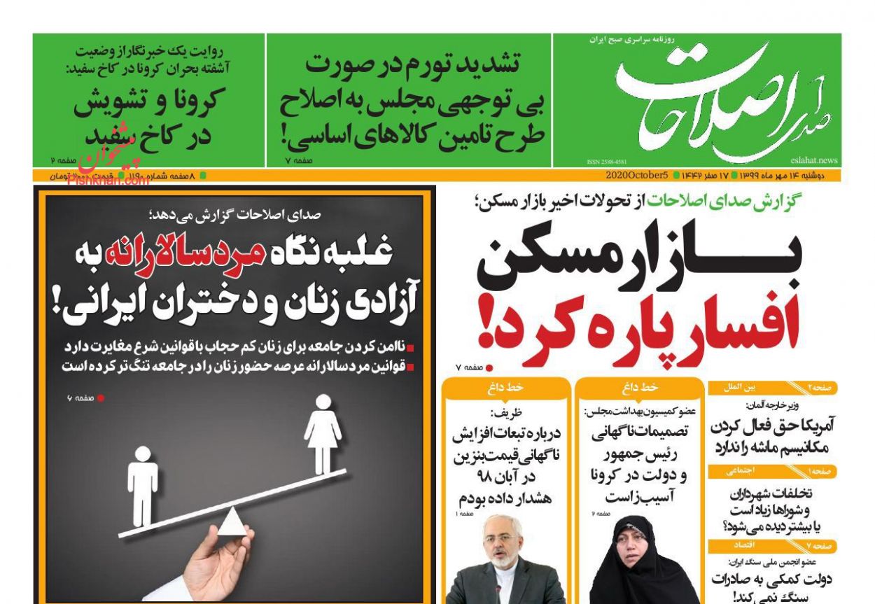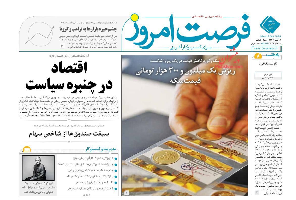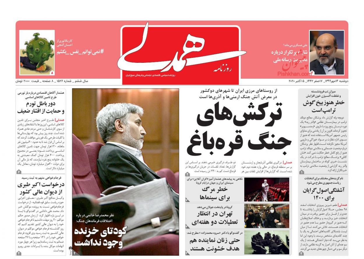 صفحه نخست روزنامه ها/ دوشنبه ۱۴ مهر ۹۹