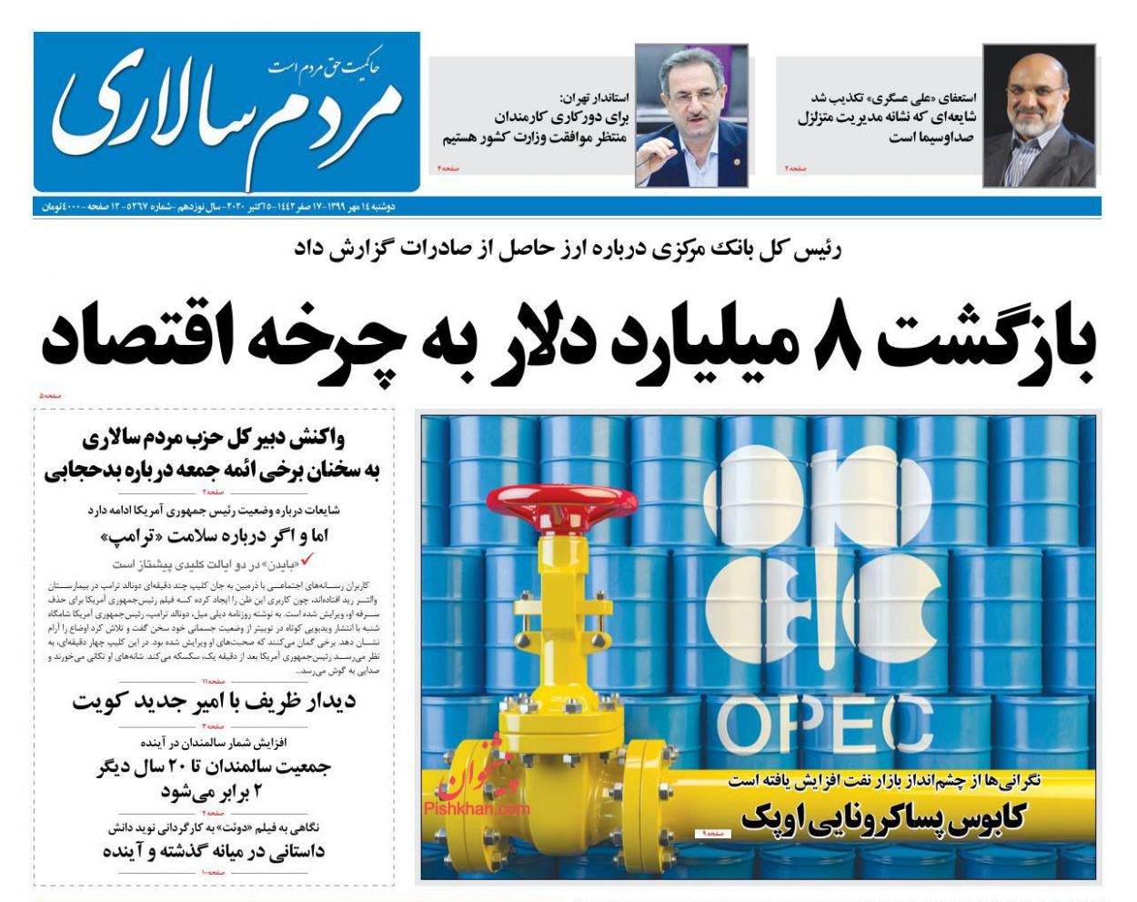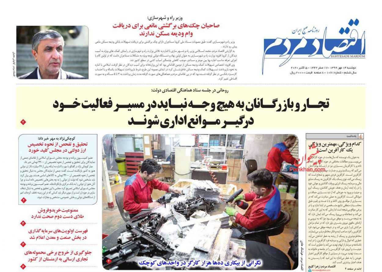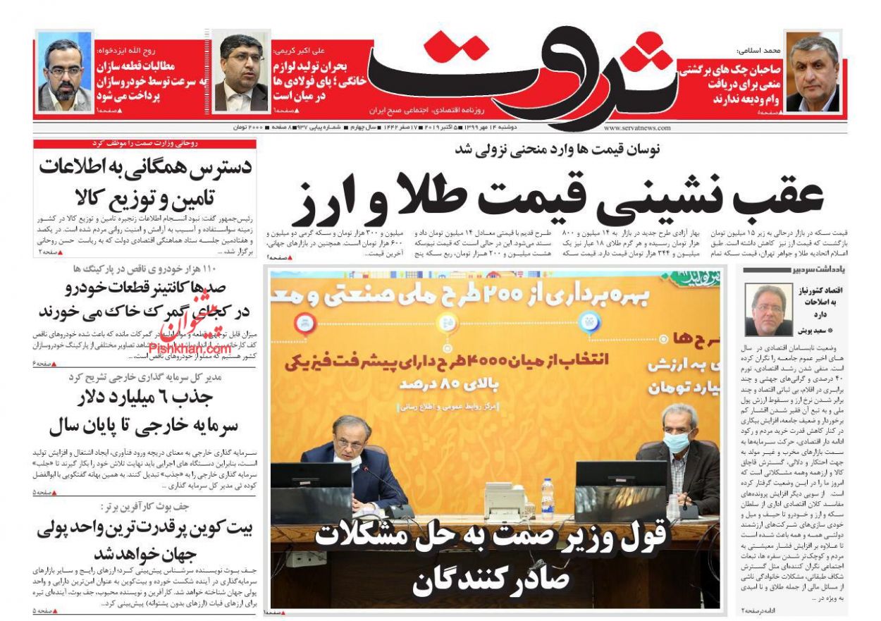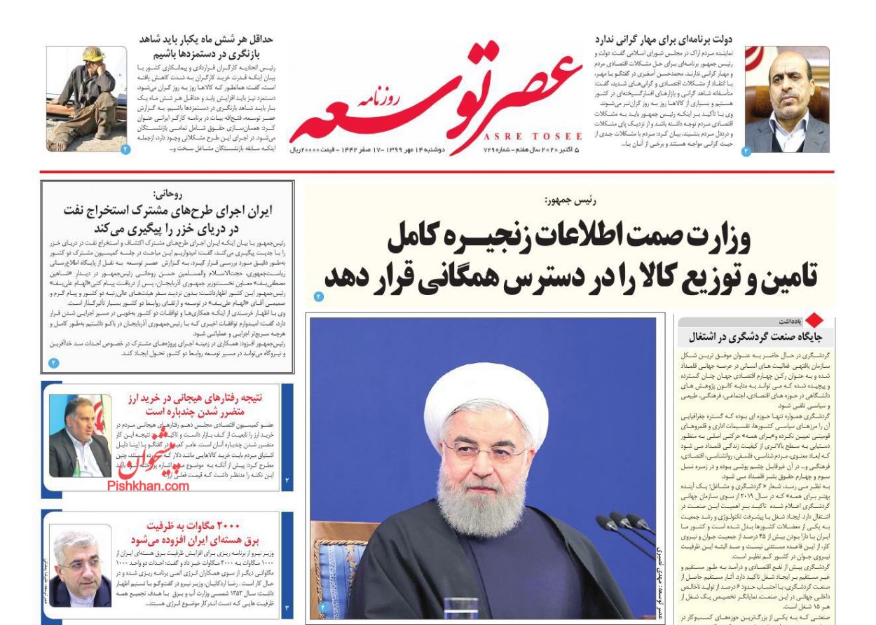 صفحه نخست روزنامه ها/ دوشنبه ۱۴ مهر ۹۹