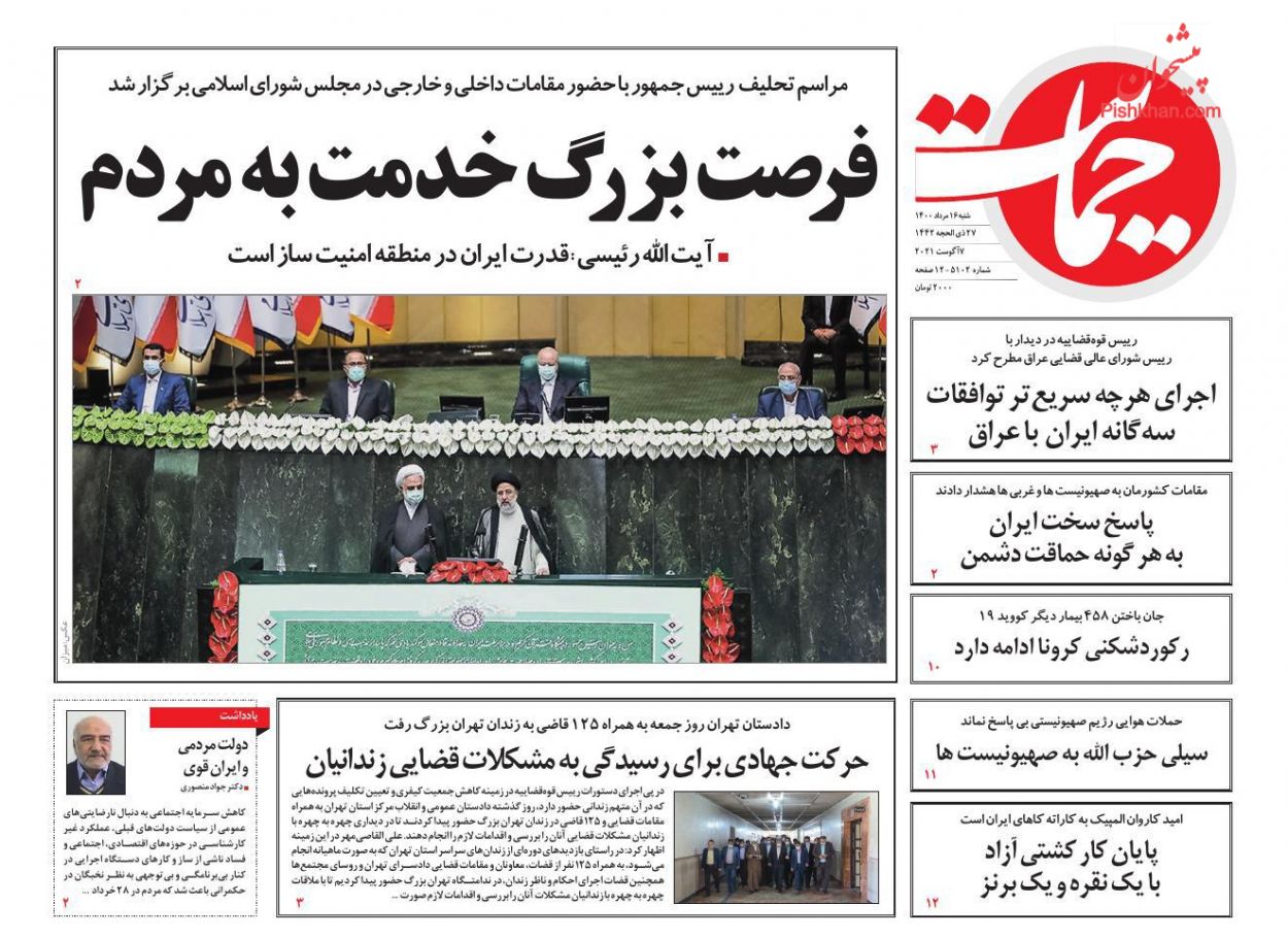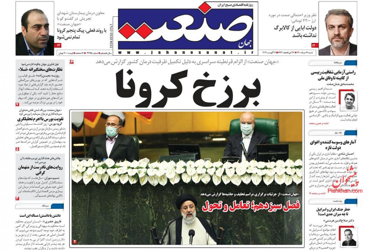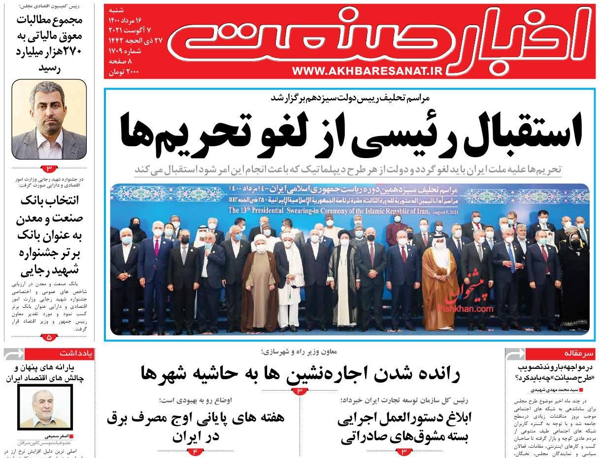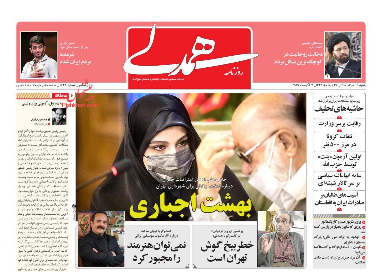 صفحه نخست روزنامه ها/ شنبه ۱۶ مرداد ۱۴۰۰