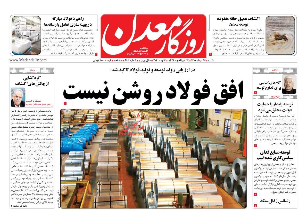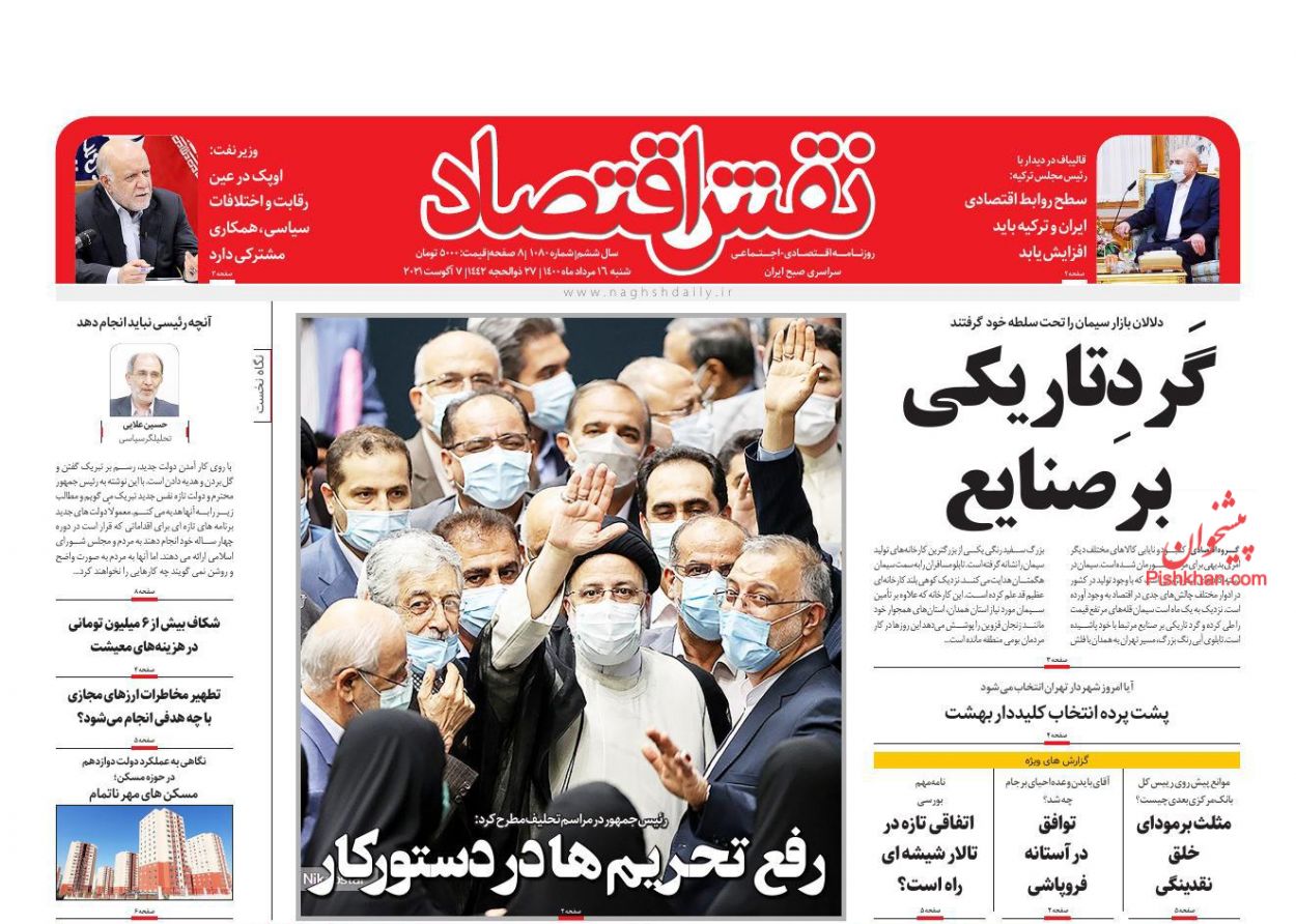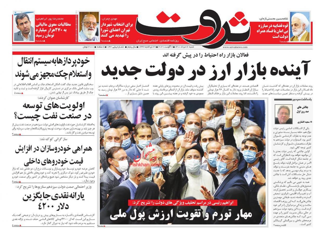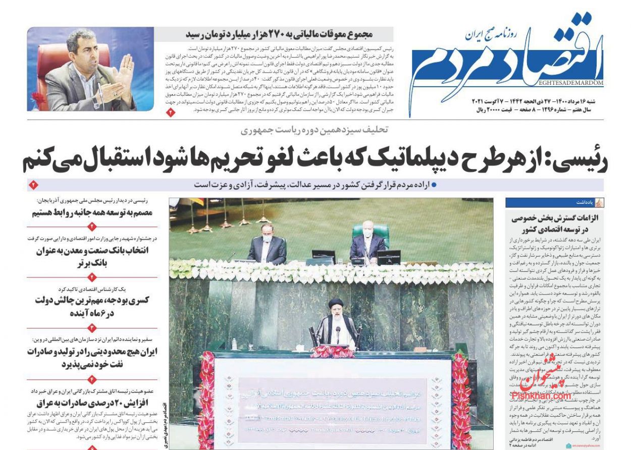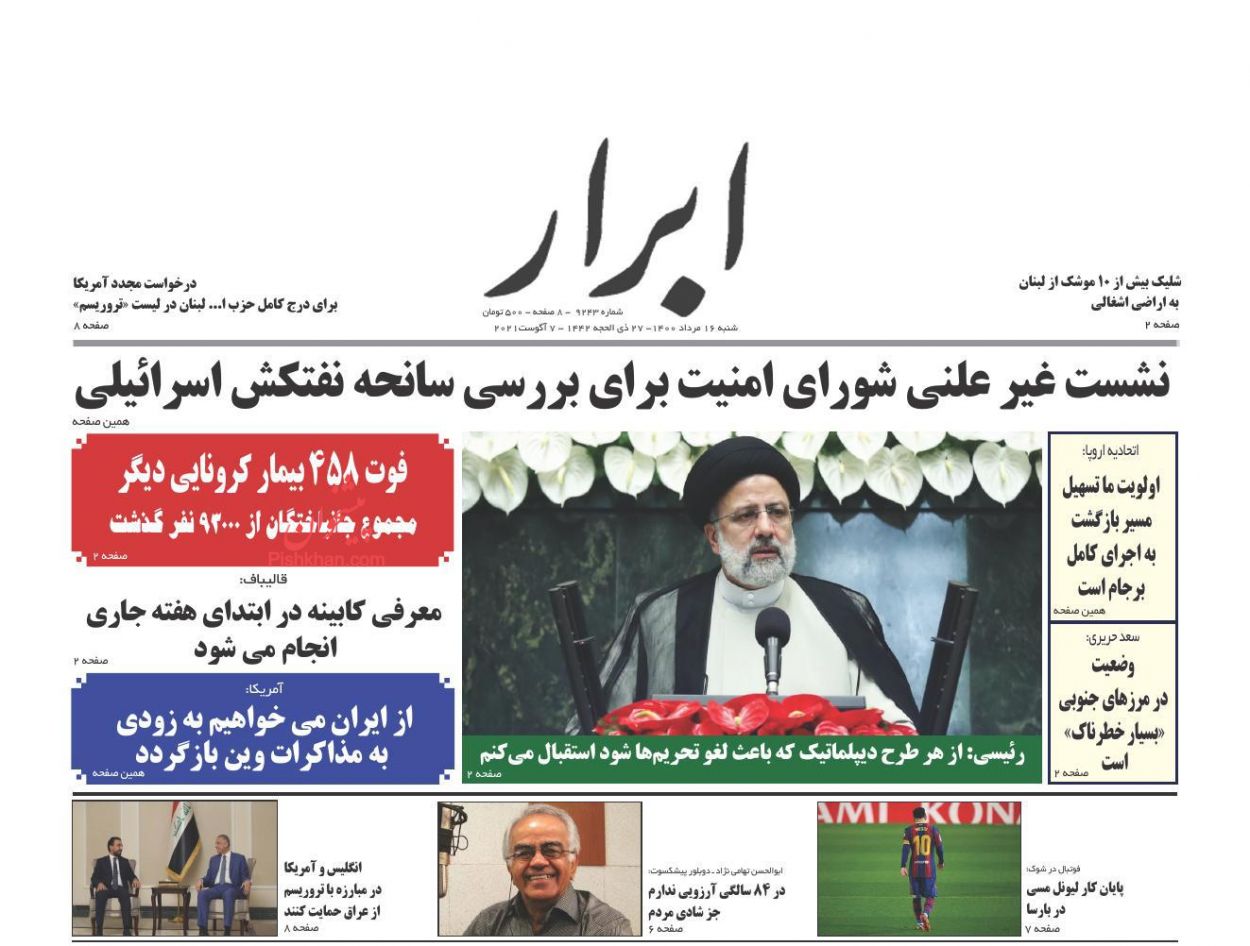 صفحه نخست روزنامه ها/ شنبه ۱۶ مرداد ۱۴۰۰
