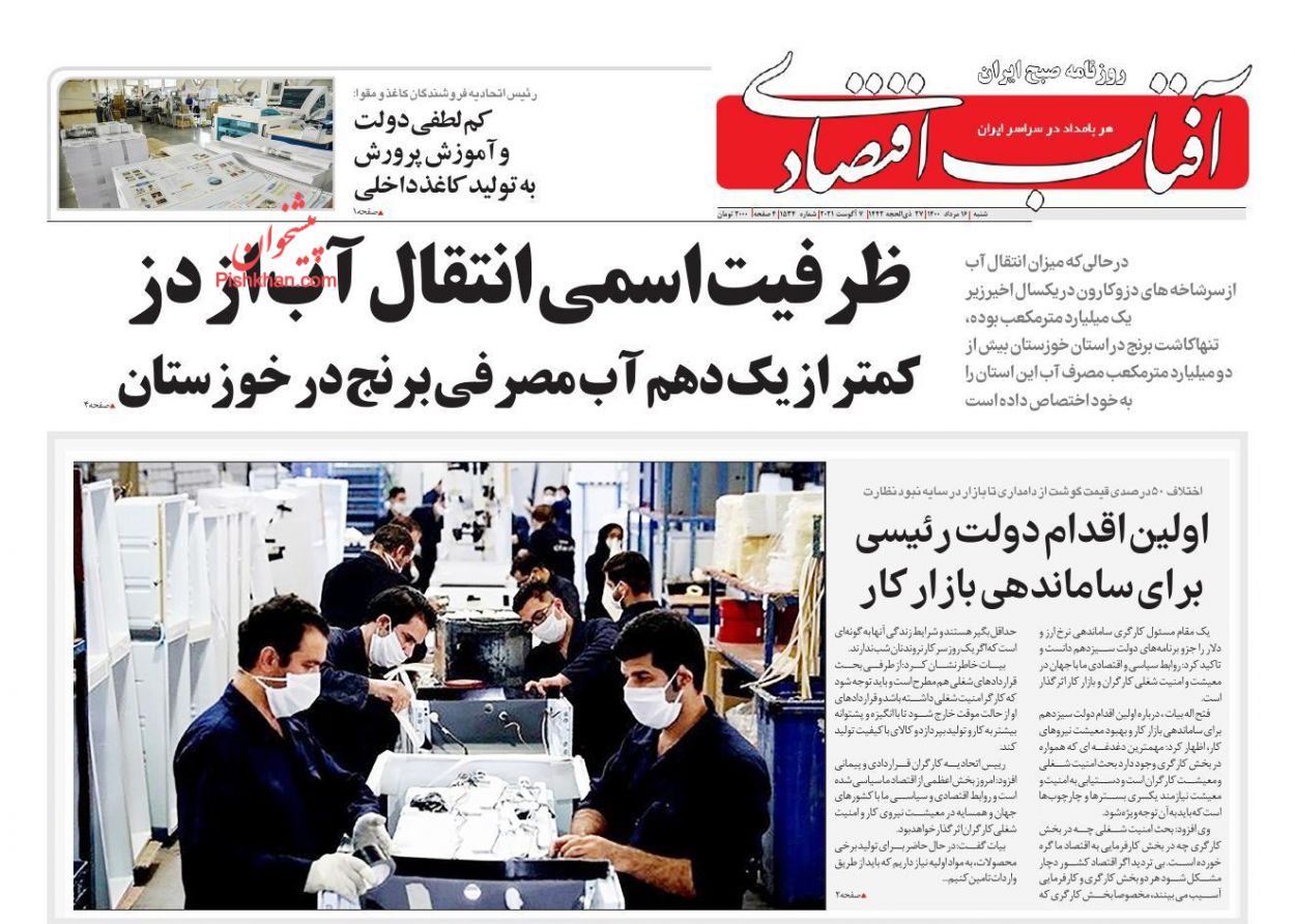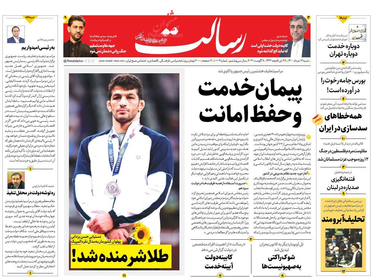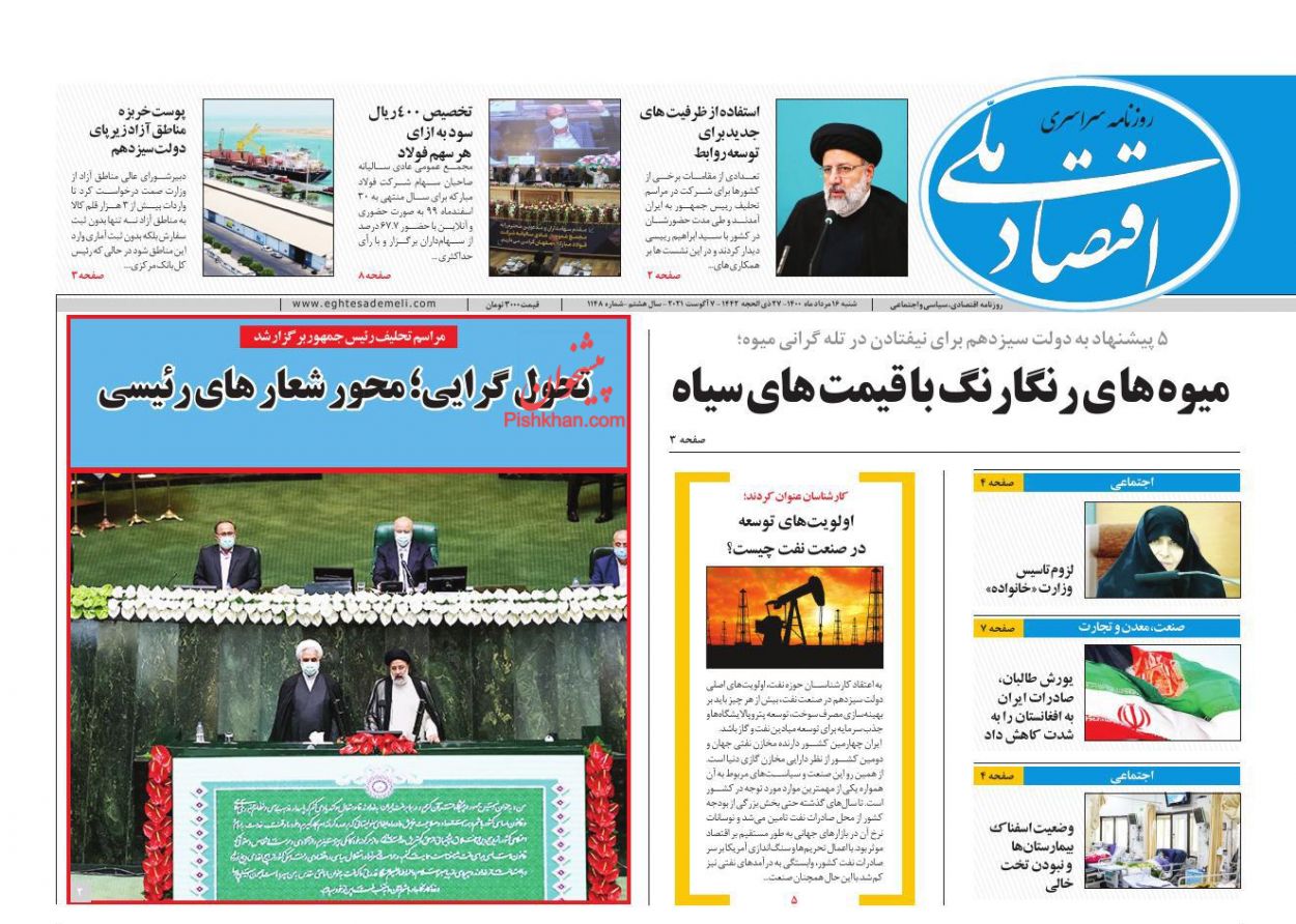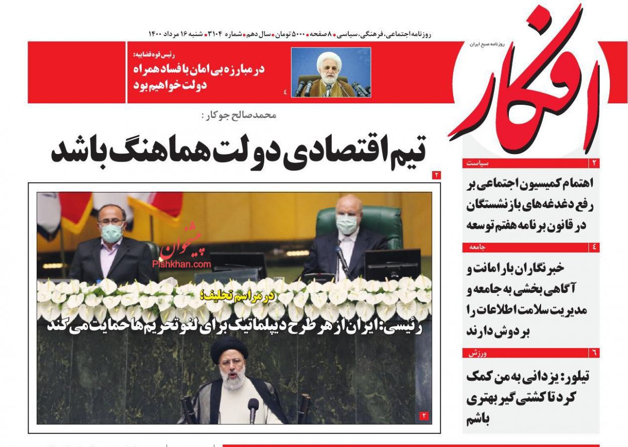 صفحه نخست روزنامه ها/ شنبه ۱۶ مرداد ۱۴۰۰