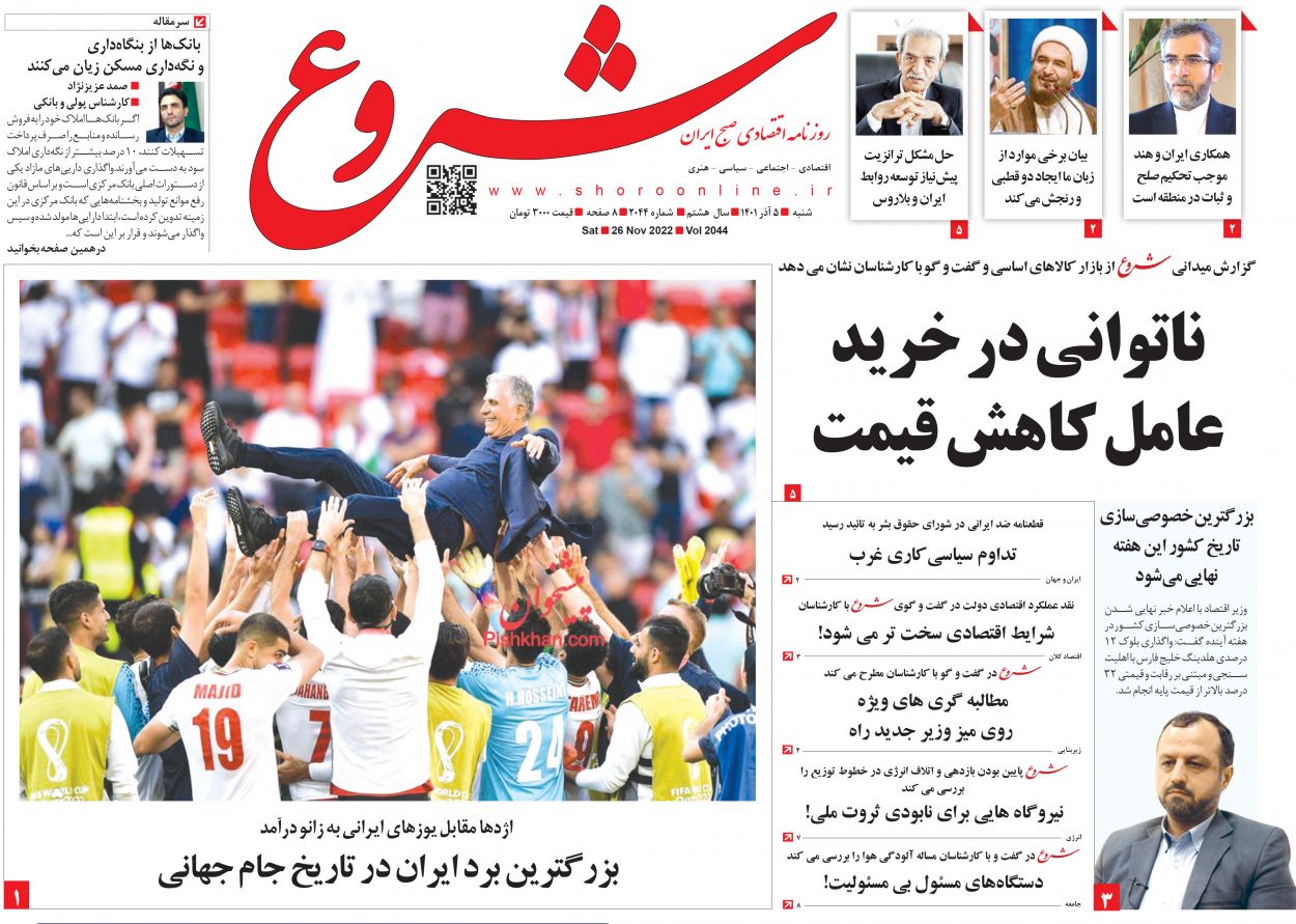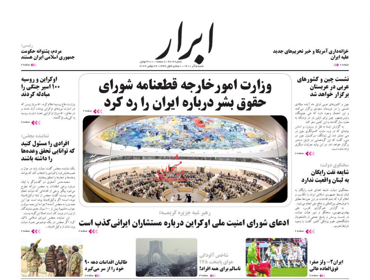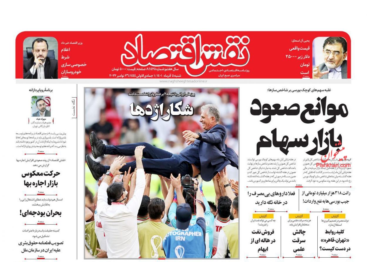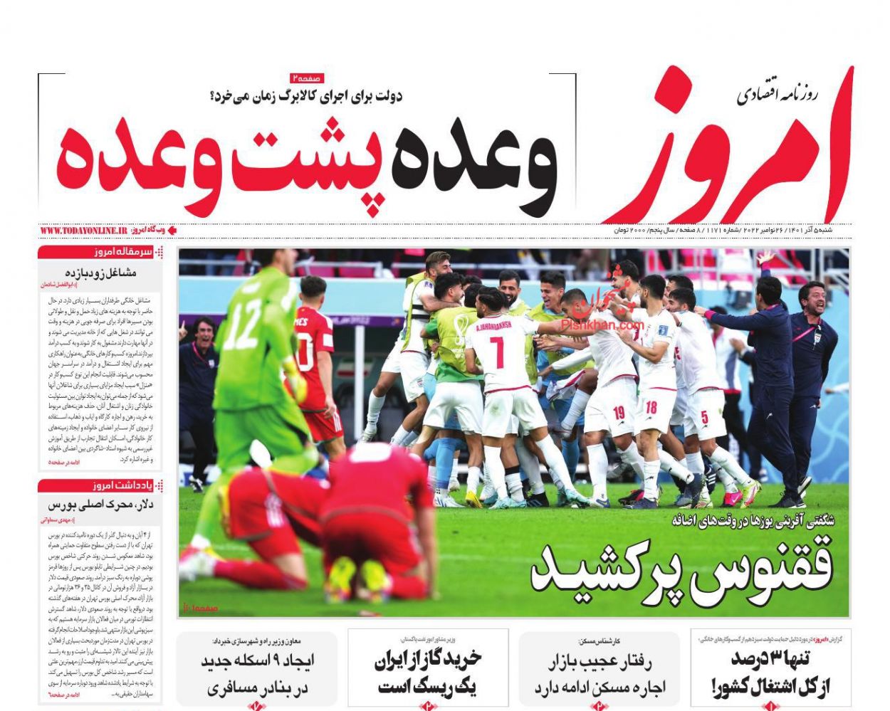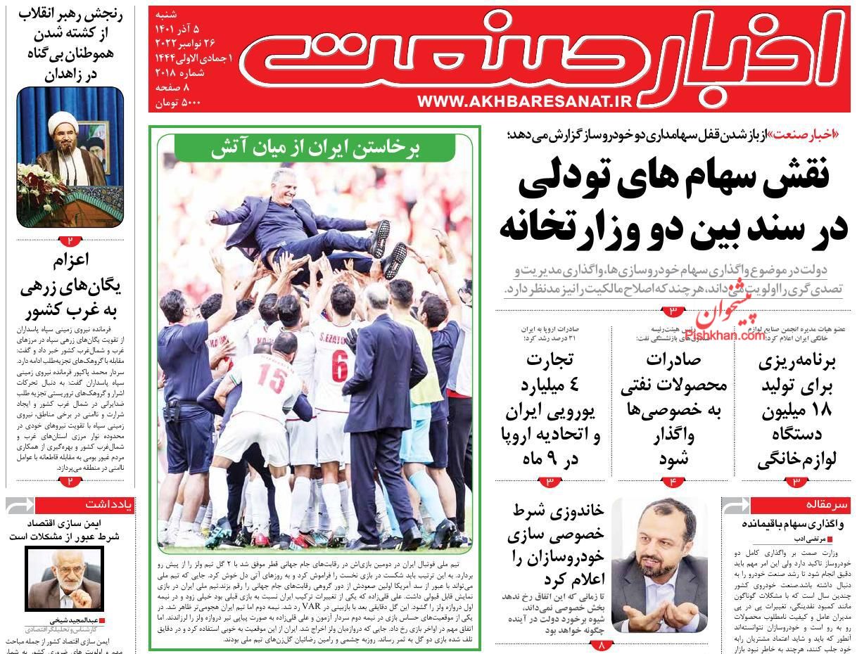 صفحه نخست روزنامه ها/ شنبه ۵ آذر ۱۴۰۱