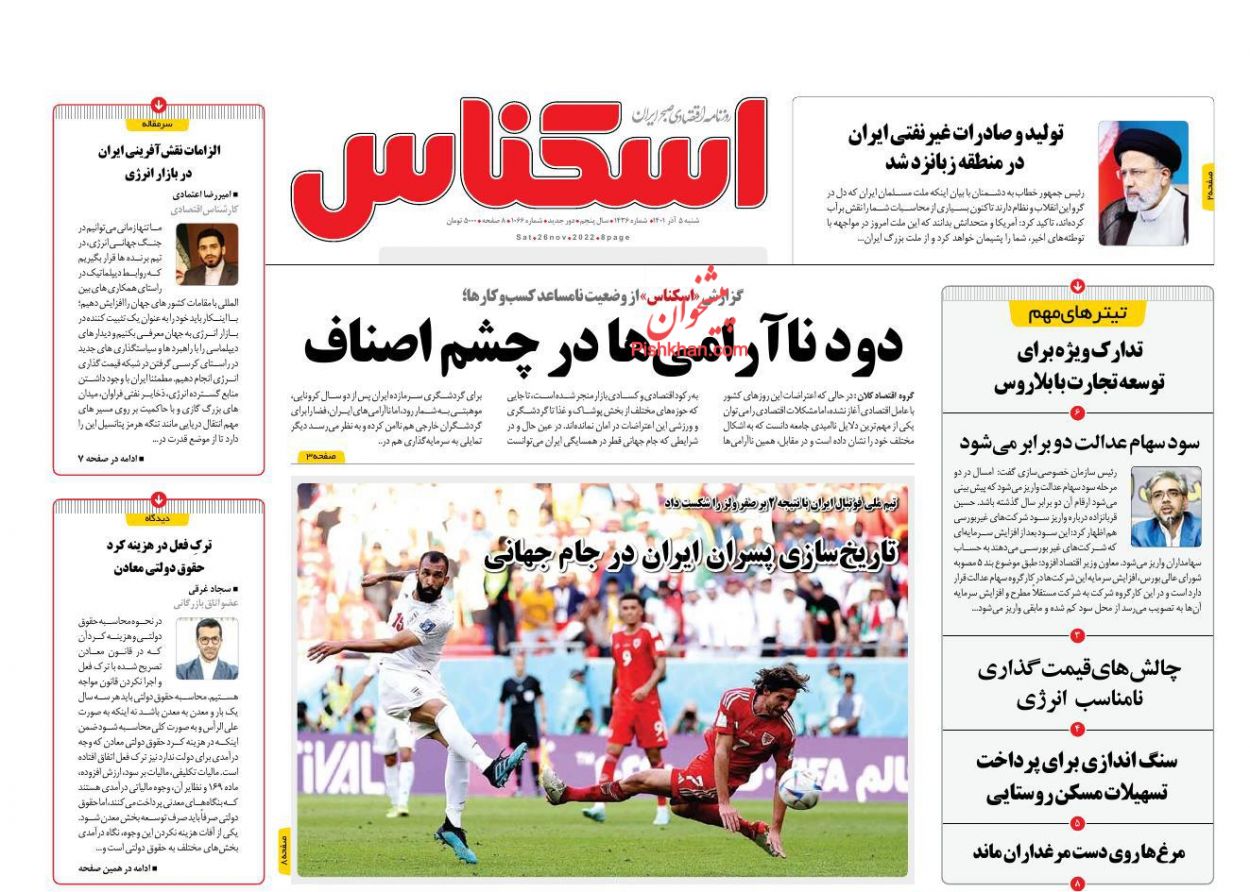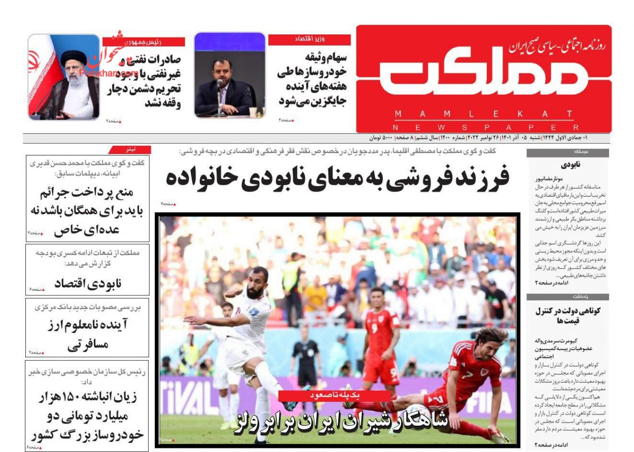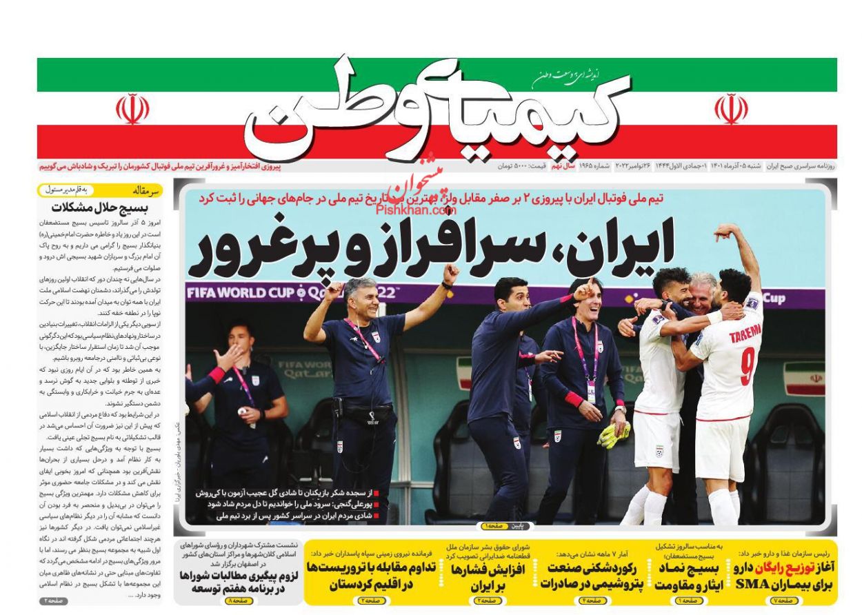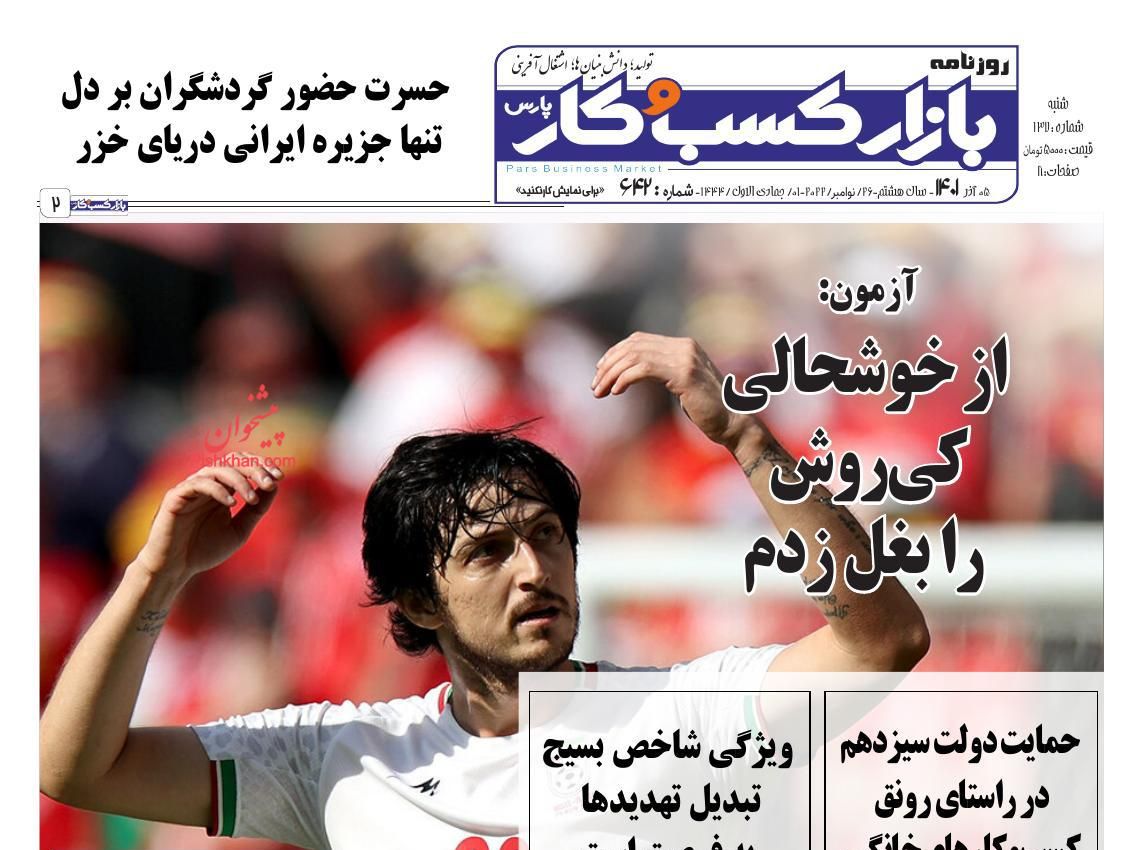 صفحه نخست روزنامه ها/ شنبه ۵ آذر ۱۴۰۱