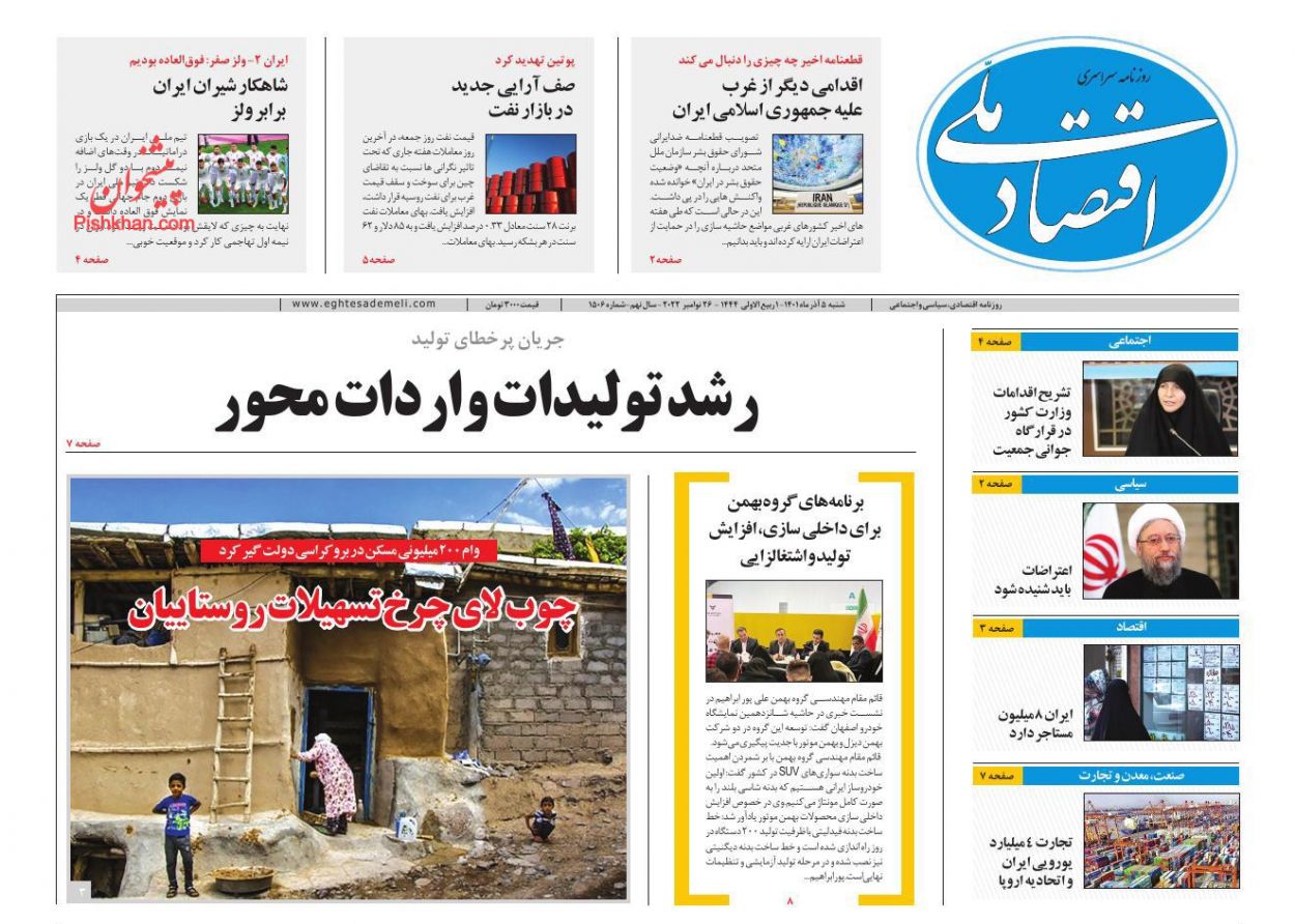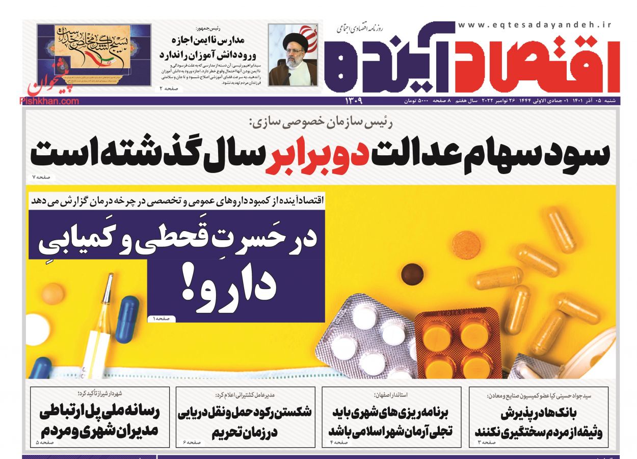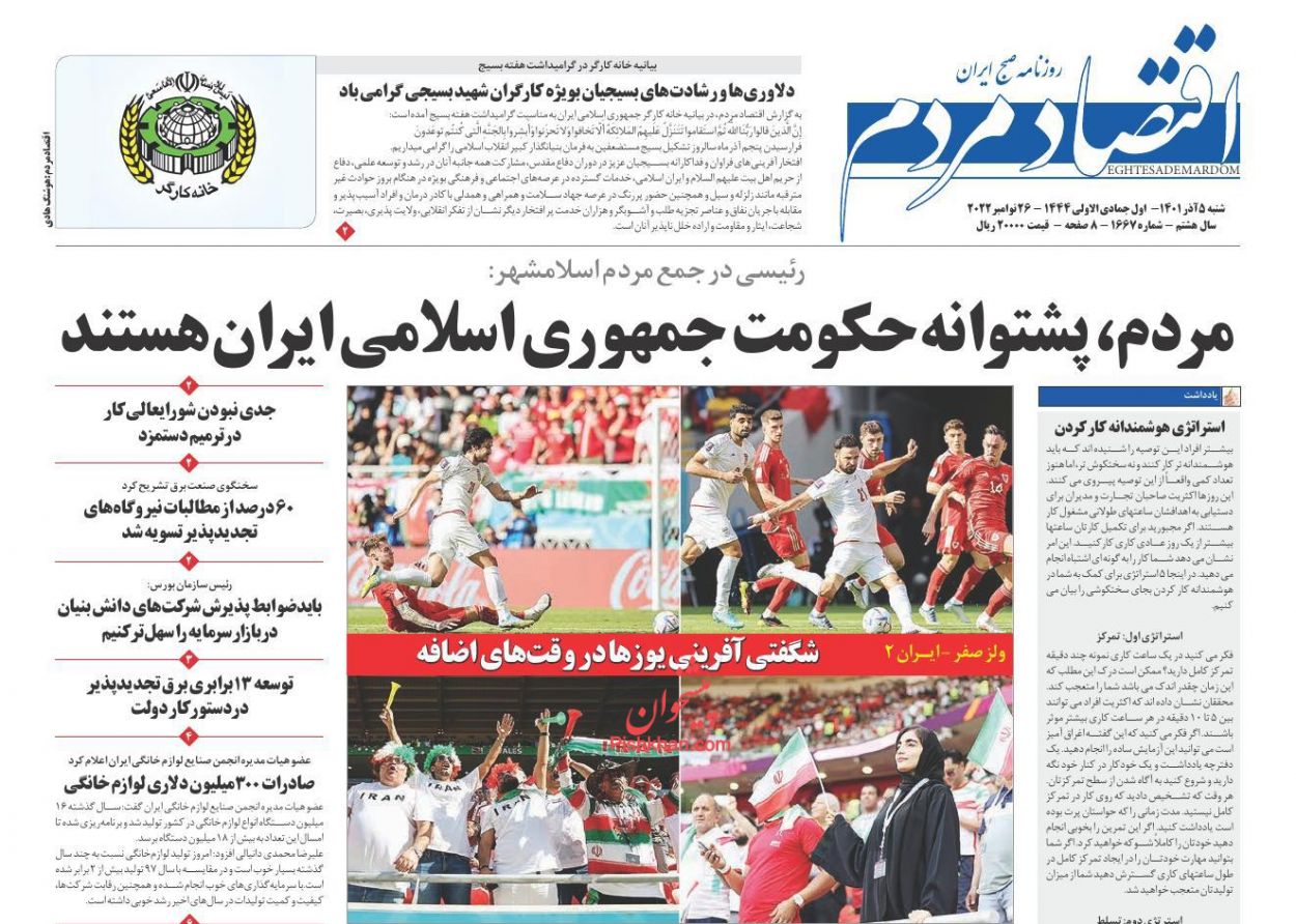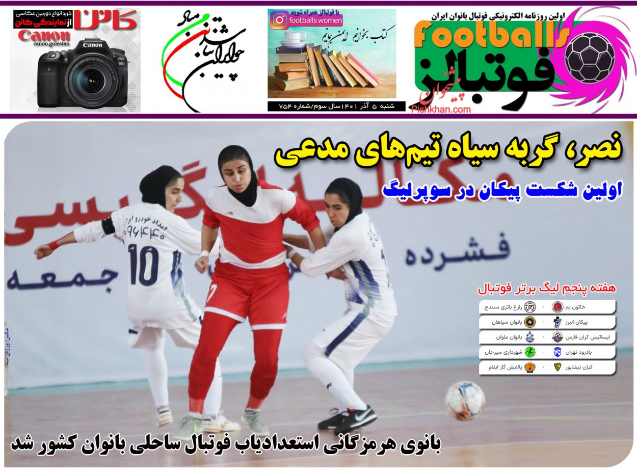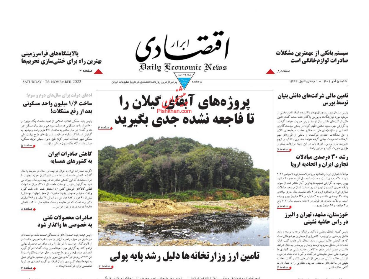 صفحه نخست روزنامه ها/ شنبه ۵ آذر ۱۴۰۱