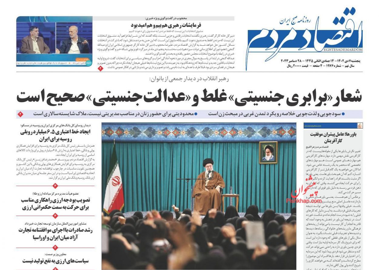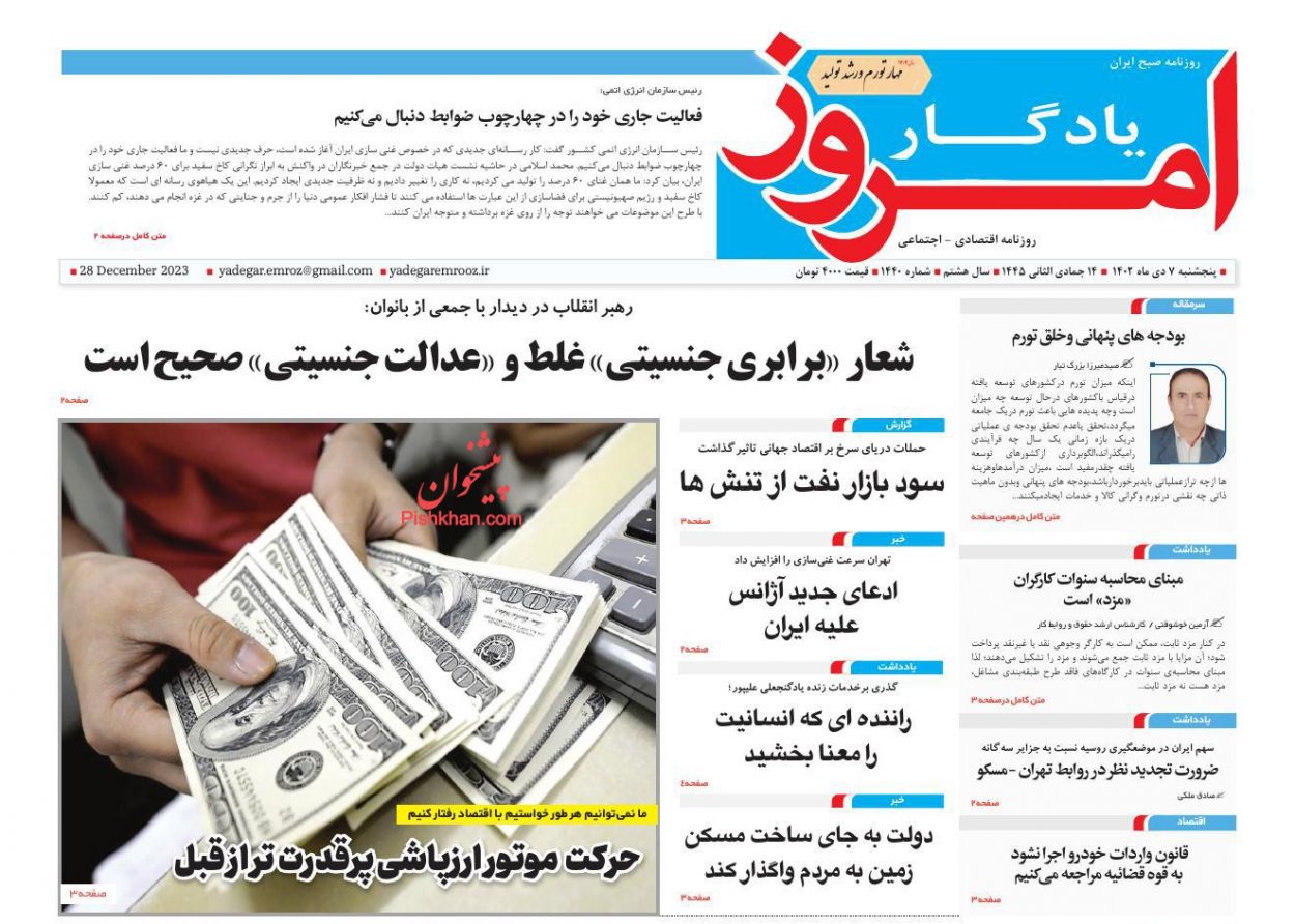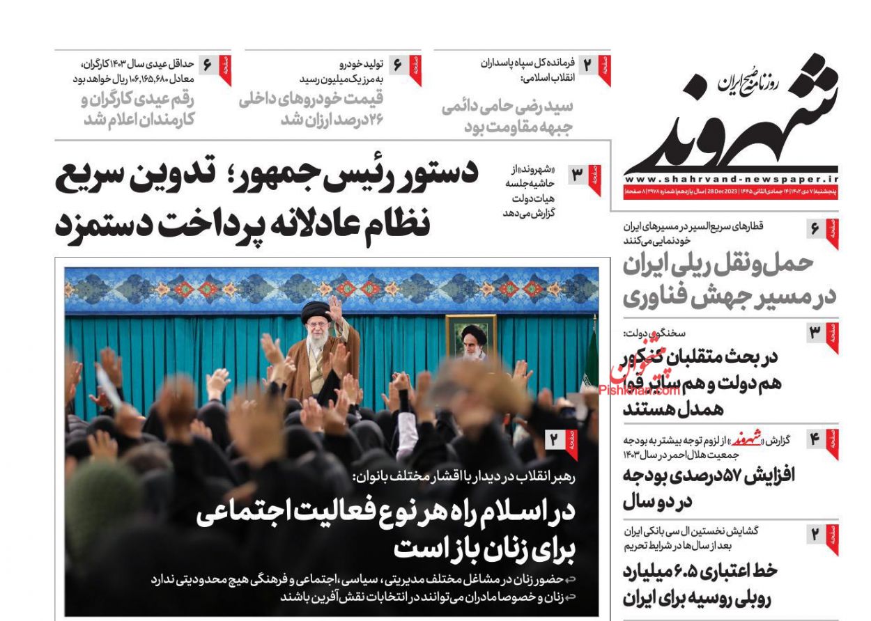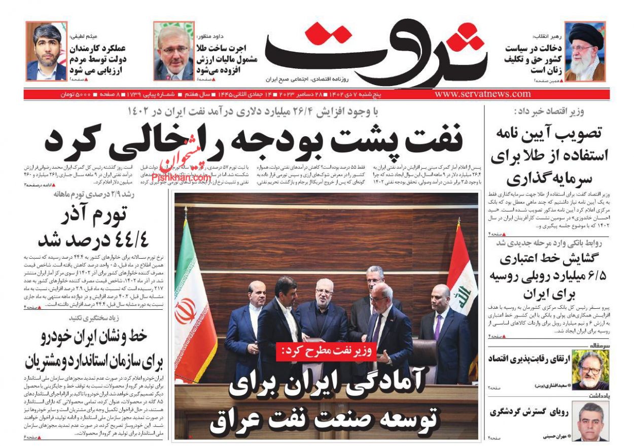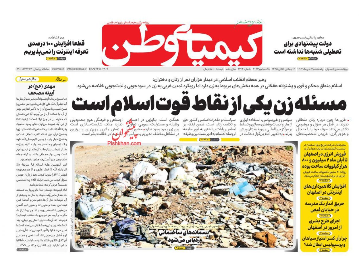 صفحه نخست روزنامه ها/ پنجشنبه ۷ دی ۱۴۰۲