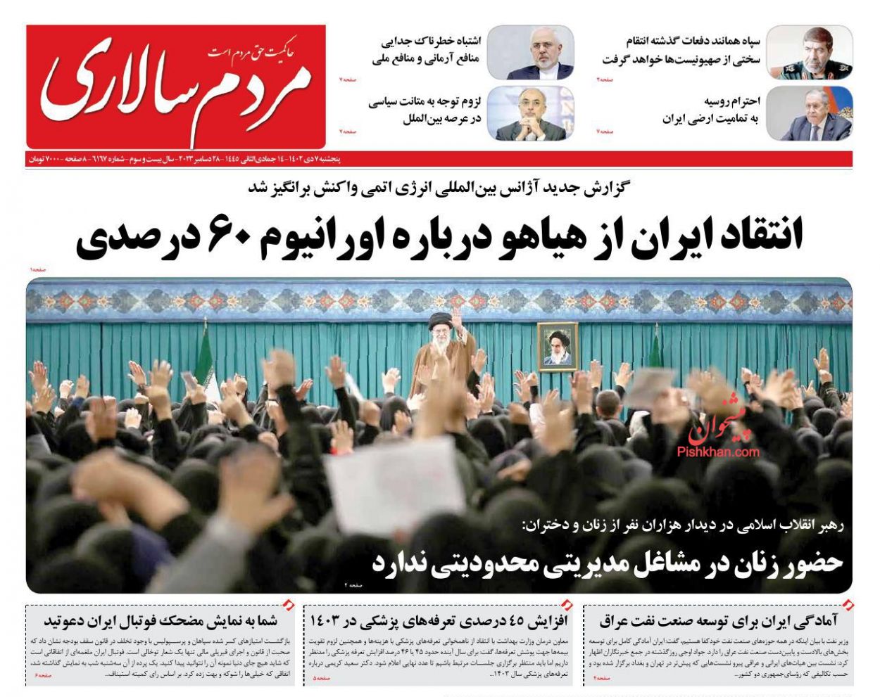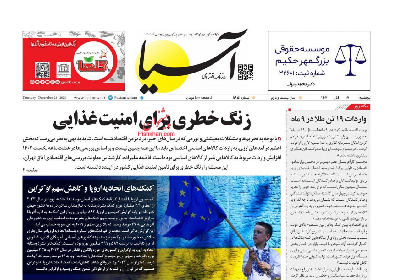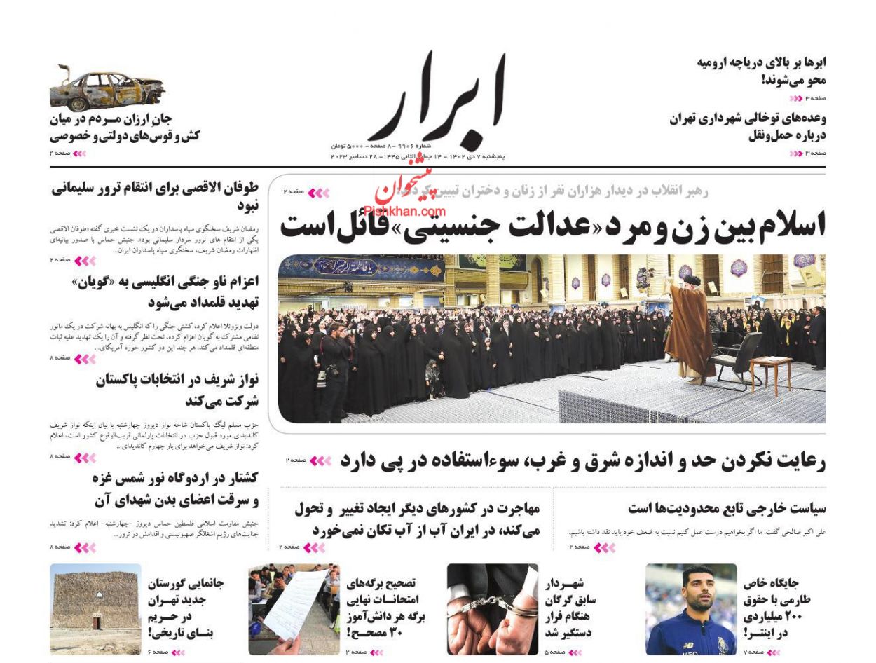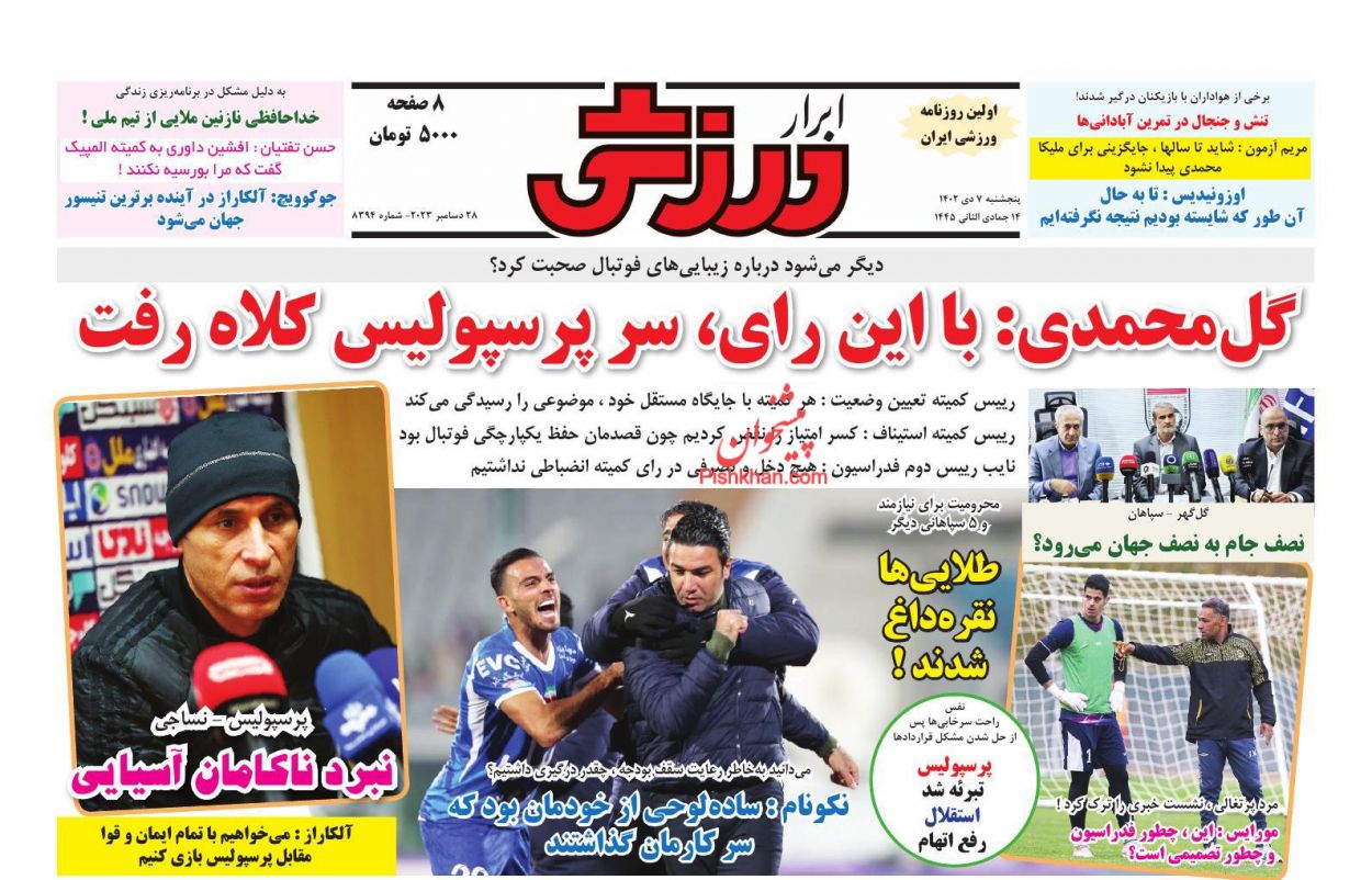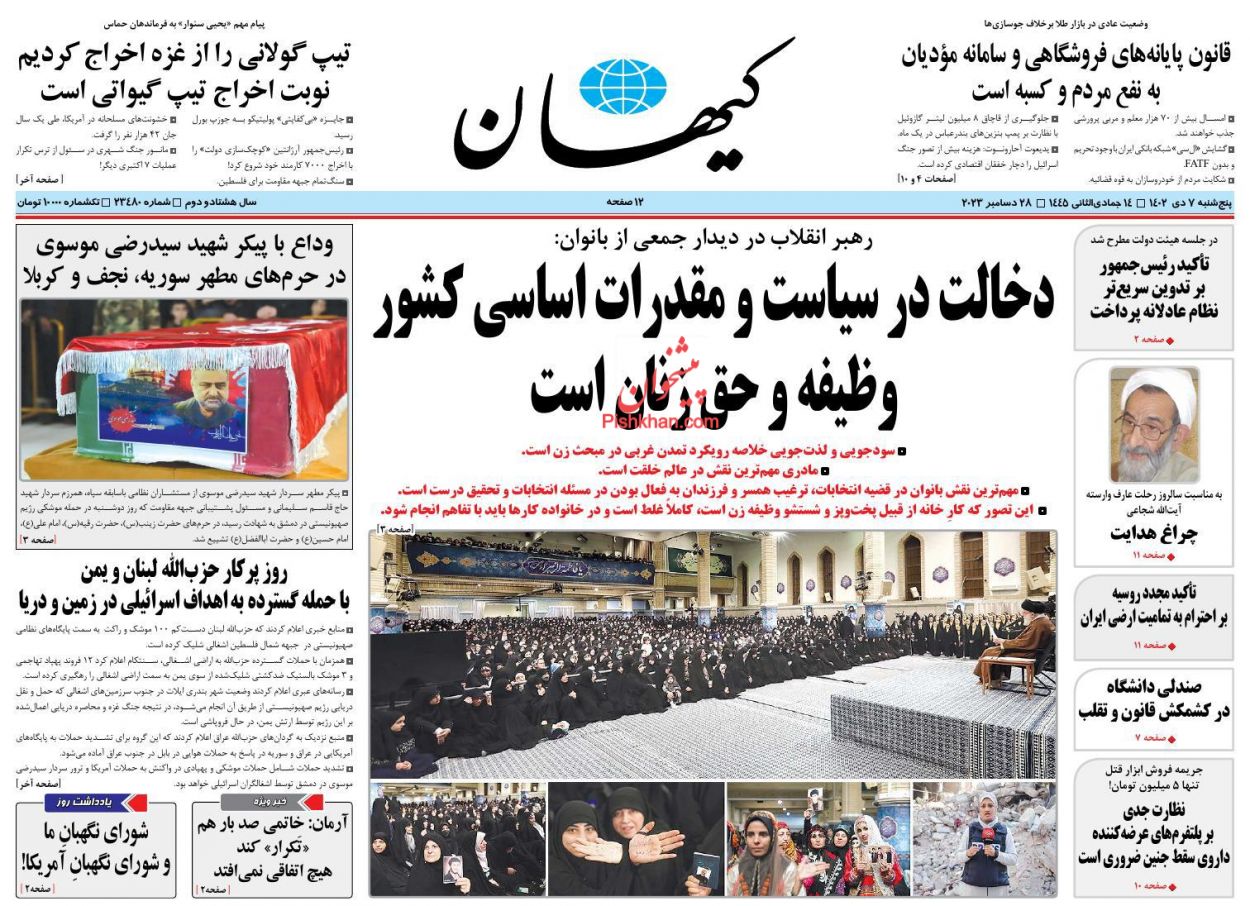 صفحه نخست روزنامه ها/ پنجشنبه ۷ دی ۱۴۰۲