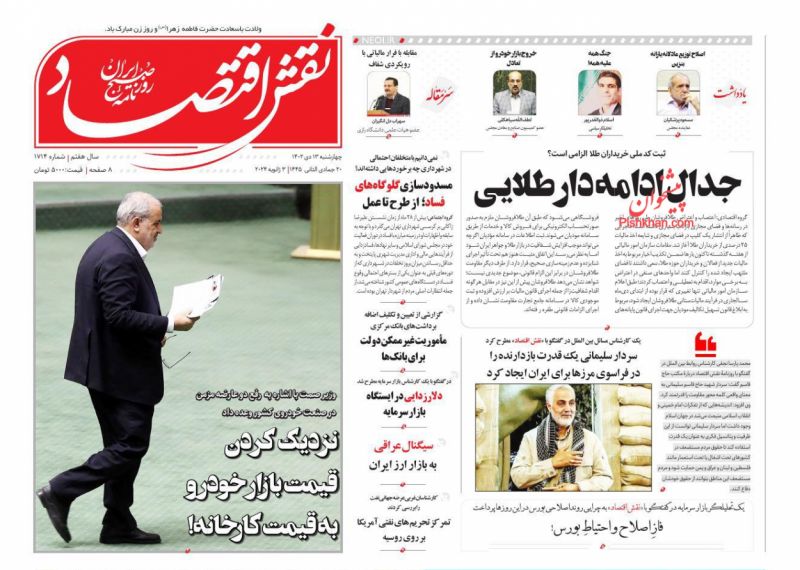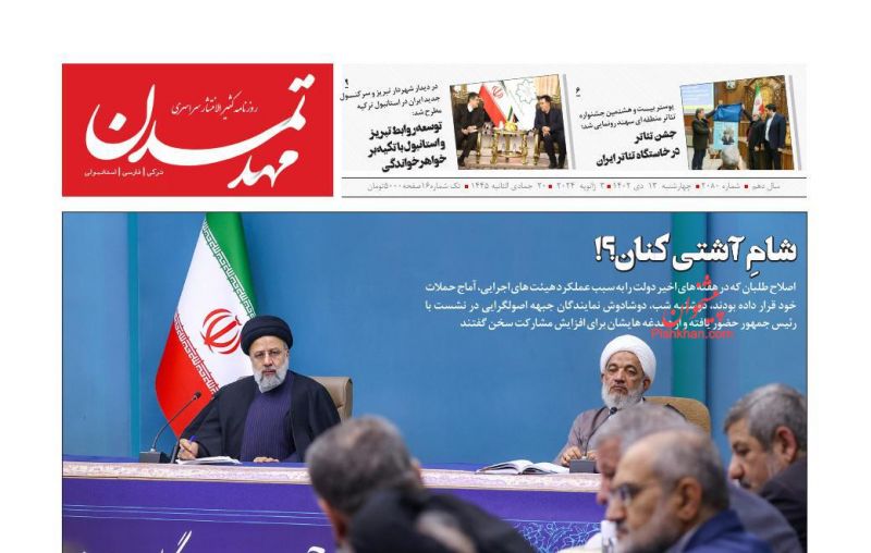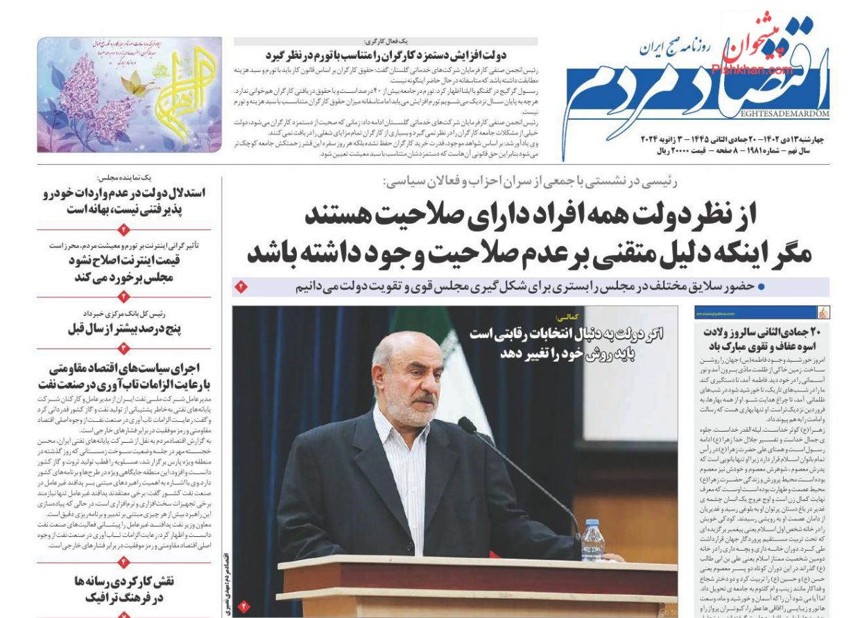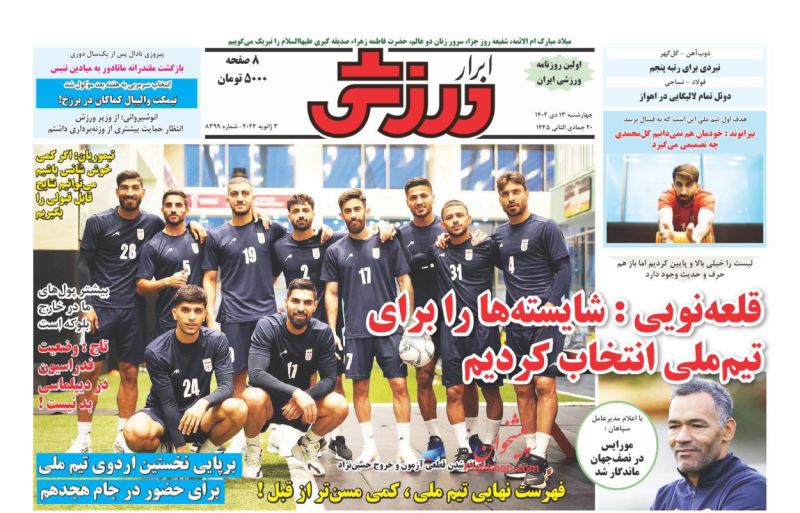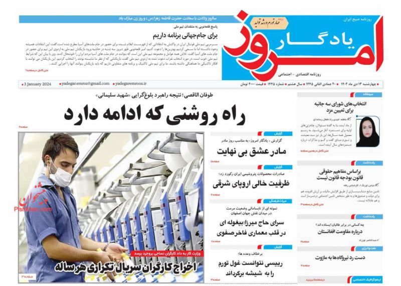 صفحه نخست روزنامه ها/ چهارشنبه ۱۳ دی ۱۴۰۲