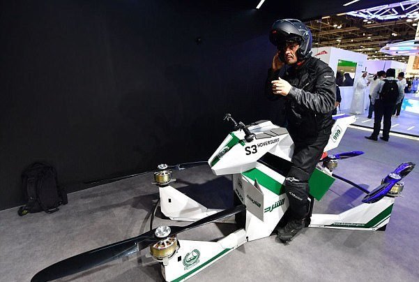 علاوه برآن یک موتورسیکلت-پهپاد به نام «Hoversurf Scorpion-3» است که به جای چرخه دارای پروانه است و میتواند پرواز کند در این نمایشگاه به نمایش درآمده است. این وسیله نقلیه که توسط مهندسان روس ساخته شده است میتواند در ارتفاع پنج متری و به مدت ۲۵ دقیقه پرواز کند.