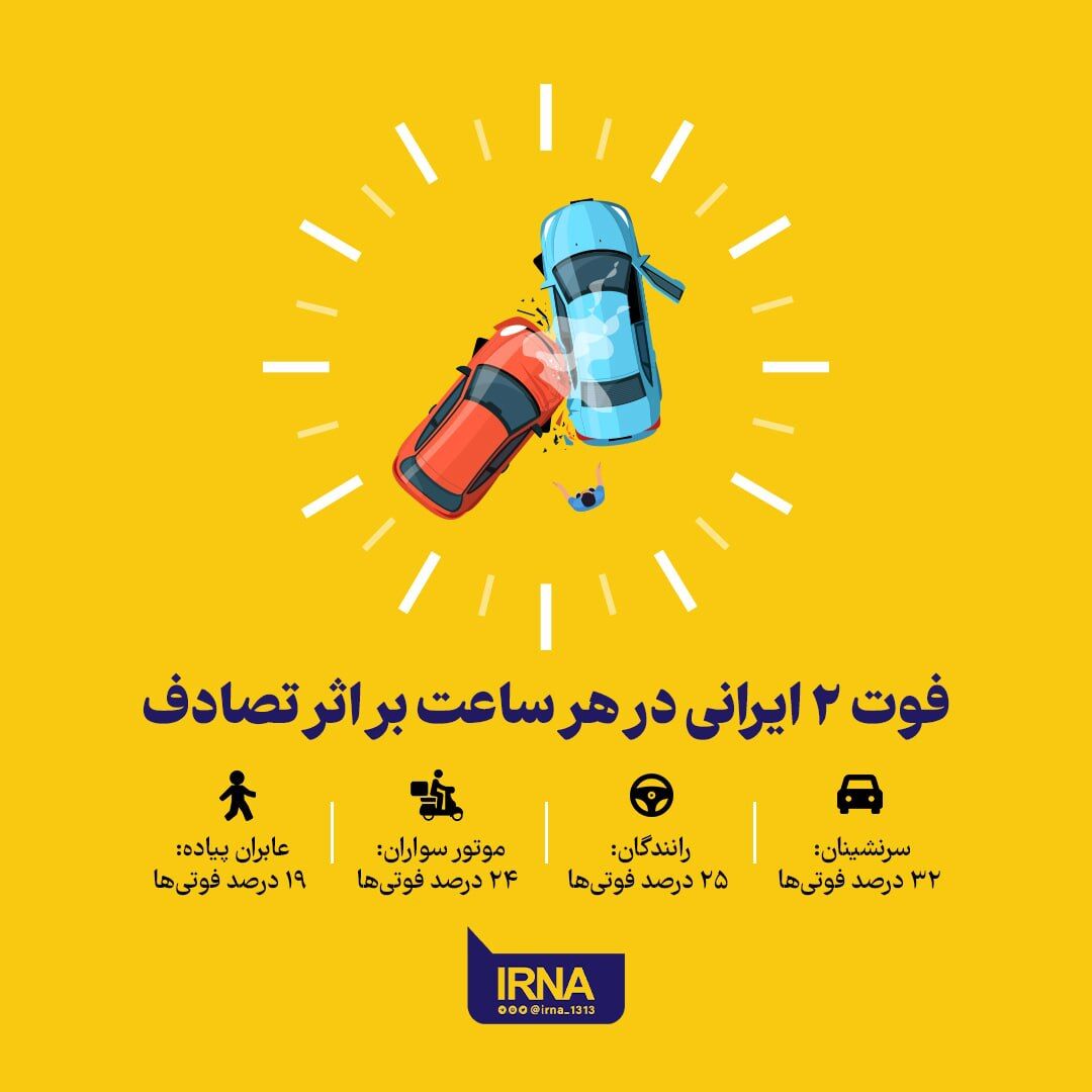 فوت ۲ ایرانی در هر ساعت بر اثر تصادف